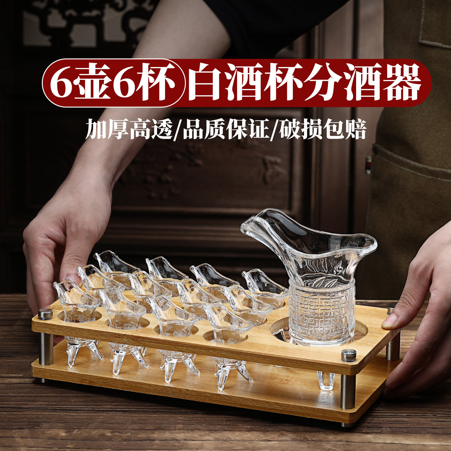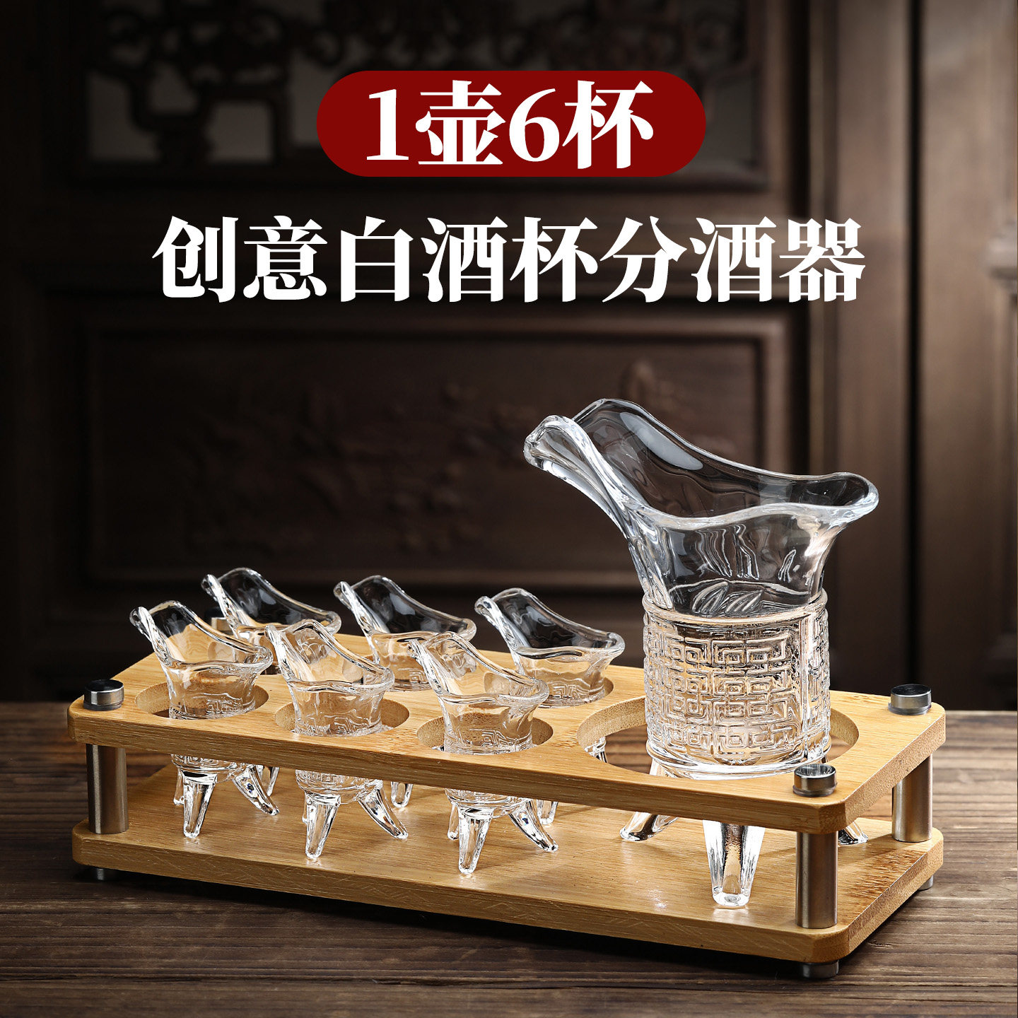 中式创意关中王帝王杯白酒杯分酒器套装带杯架轻奢高档复古小酒杯