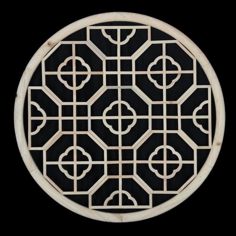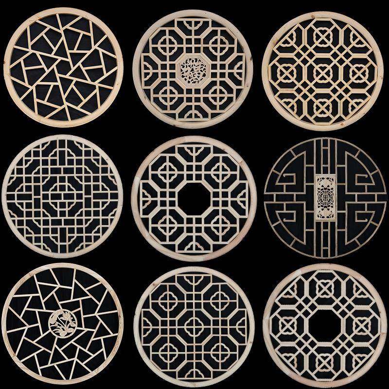 东阳木雕新中式仿古镂空雕花实木吊顶圆形窗花窗花格客厅隔断灯罩