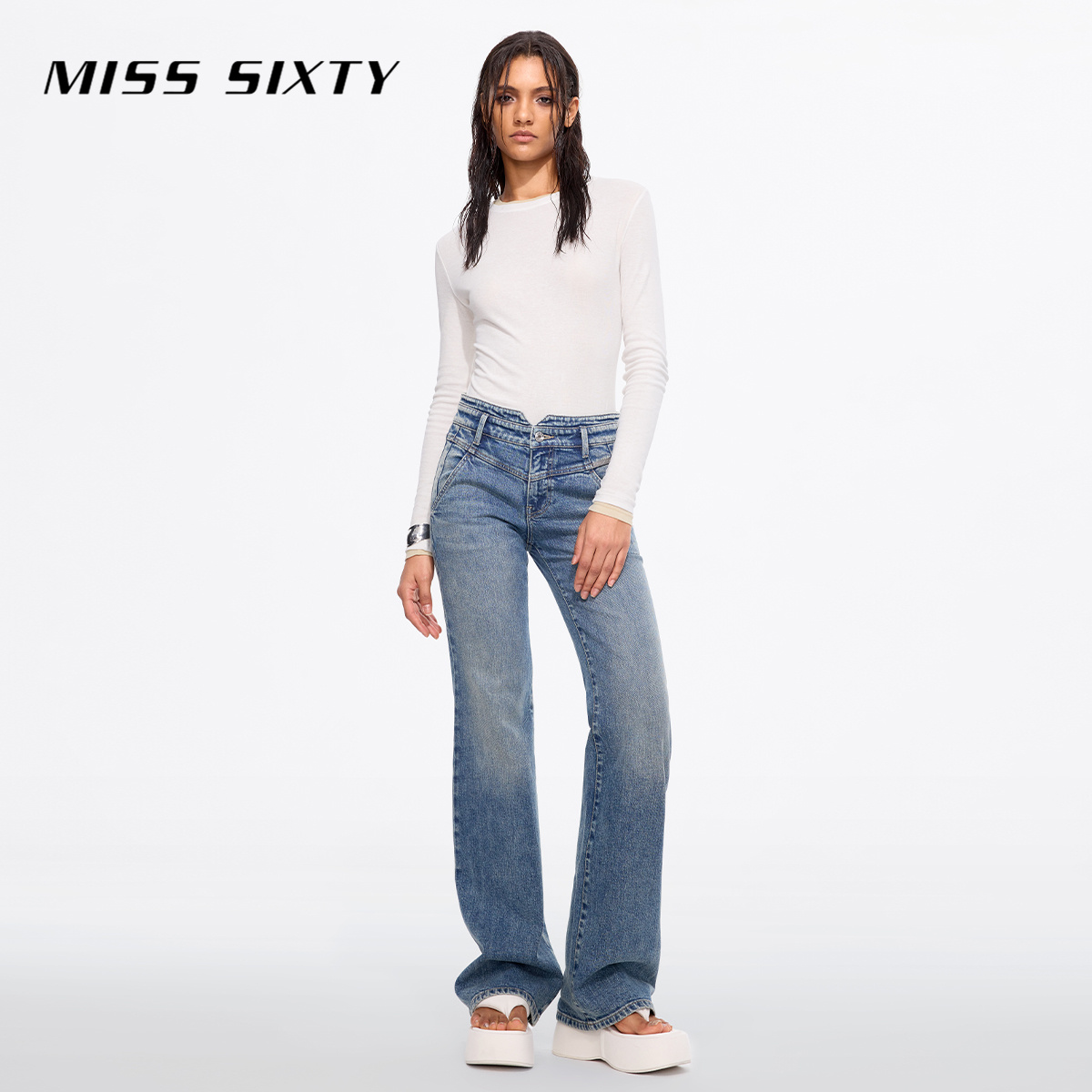 Miss Sixty2025秋季新款牛仔裤女V腰复古高腰修身显瘦微喇叭长裤