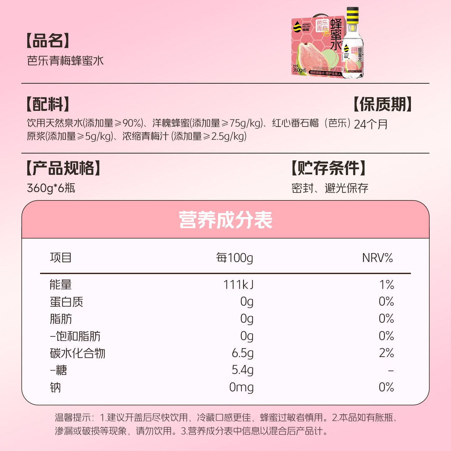 蜂解芭乐青梅蜂蜜水360g*6瓶/箱