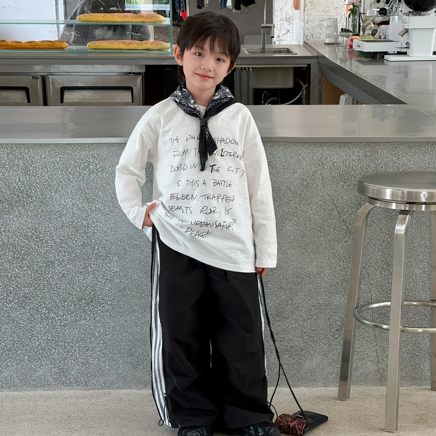 小杰家2025男童秋季新款韩版字母印花T恤竹节棉圆领儿童打底衫