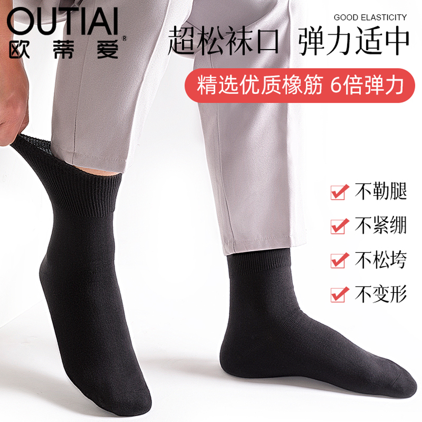 欧蒂爱100%棉松口男袜纯棉线老人袜宽口袜无骨缝合抗菌防臭黑袜子