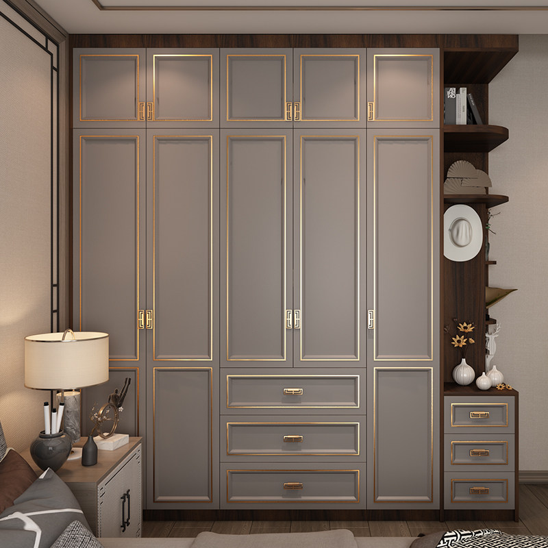 现代新中式衣柜整体轻奢家用卧室实木组合四五门衣柜顶柜衣橱定制