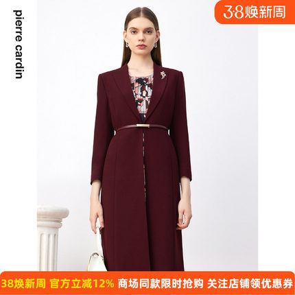 商场同款皮尔卡丹女装连衣裙秋季新款红色假两件端庄气场裙子