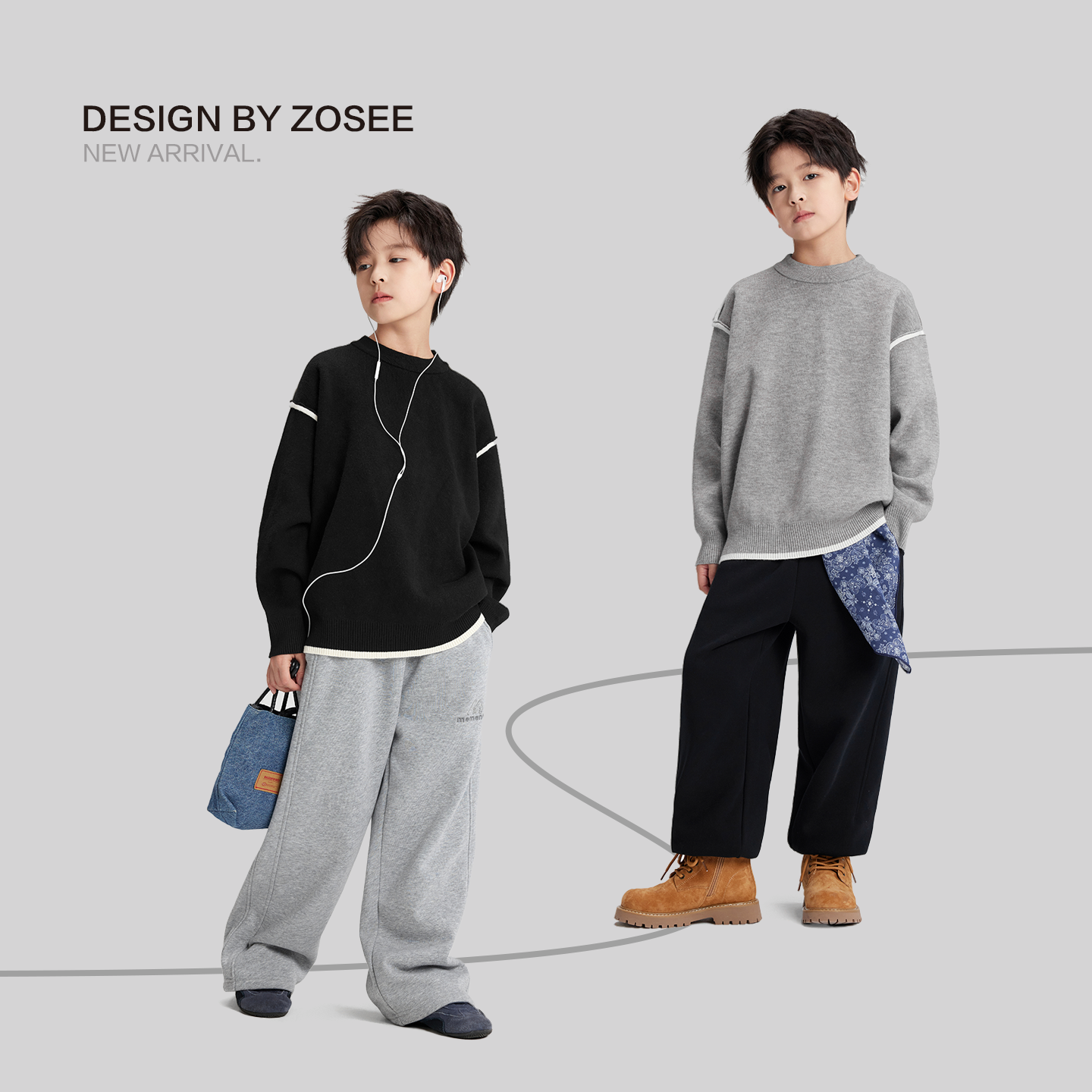 左西童装男童毛衣秋冬款2025新款儿童中大童仿羊绒套头针织衫冬装
