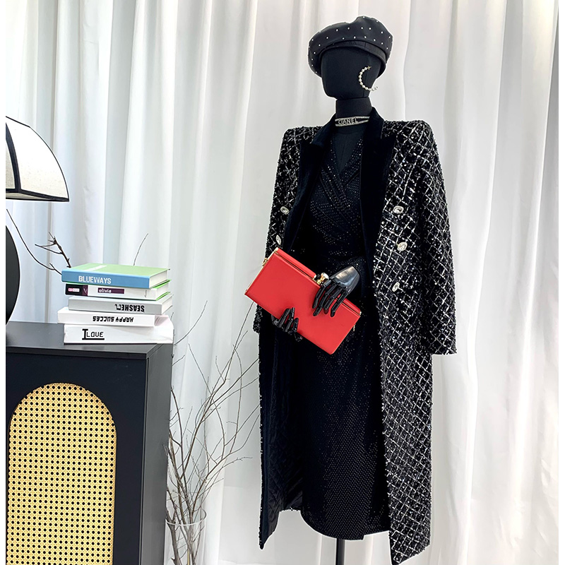 品诺狐时尚复古冬季新品女士修身长款金丝绒加棉加厚保暖大衣外套
