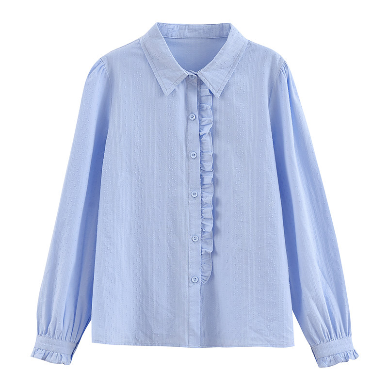 长袖全棉衬衫木耳边法式单排扣