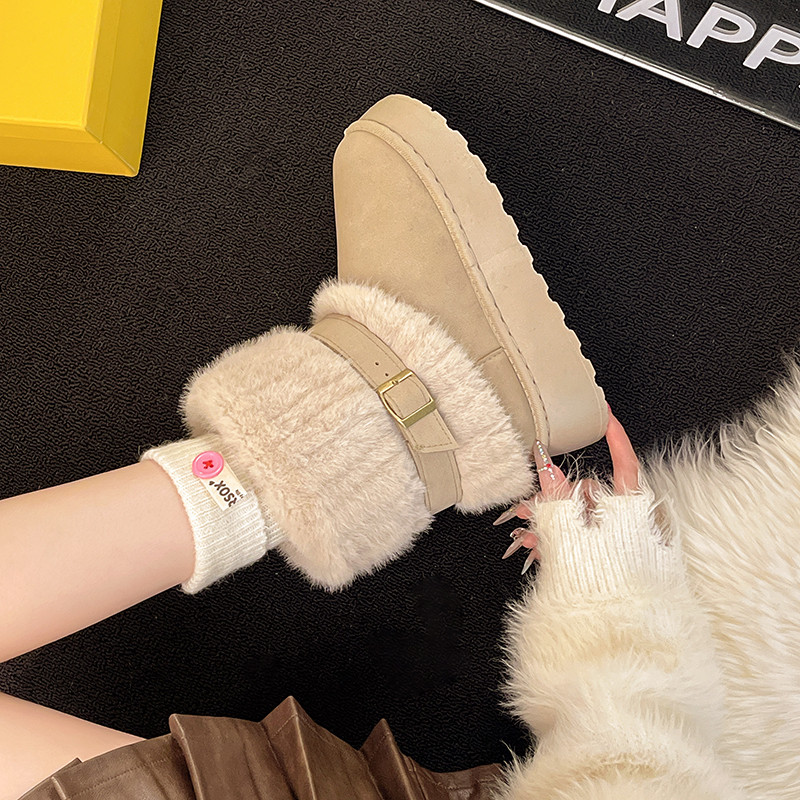 大码女鞋41到43厚底雪地靴女2025新款冬季加绒勃肯短靴毛毛棉鞋42