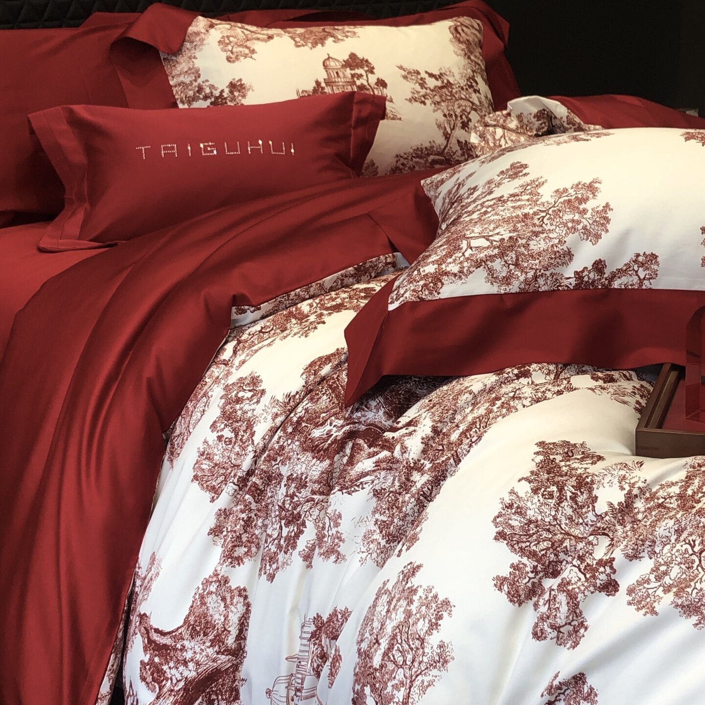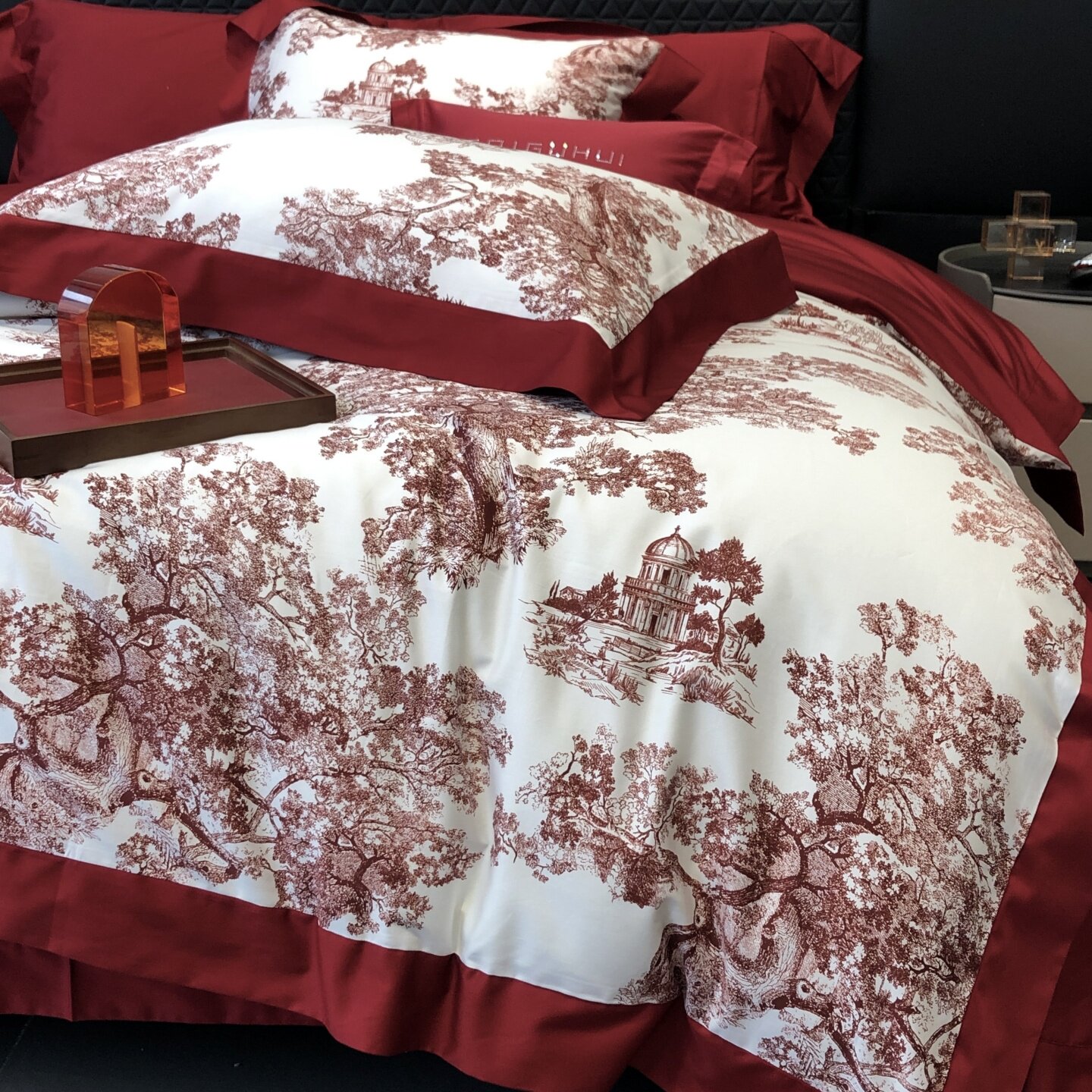 ROLAND LIVE100长绒棉红色四件套全棉被套床单喜庆结婚乔迁套件