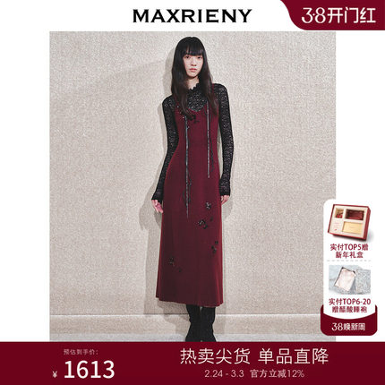 【商场同款-节庆穿搭】MAXRIENY精致复古安哥拉红针织吊带连衣裙