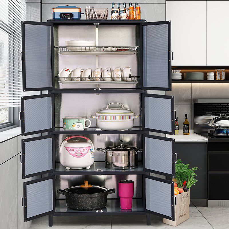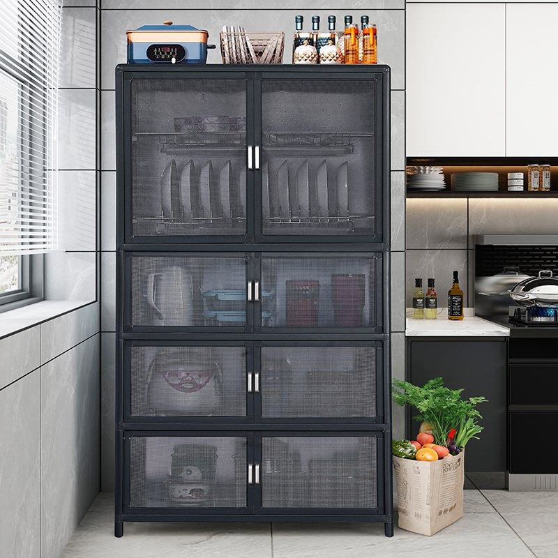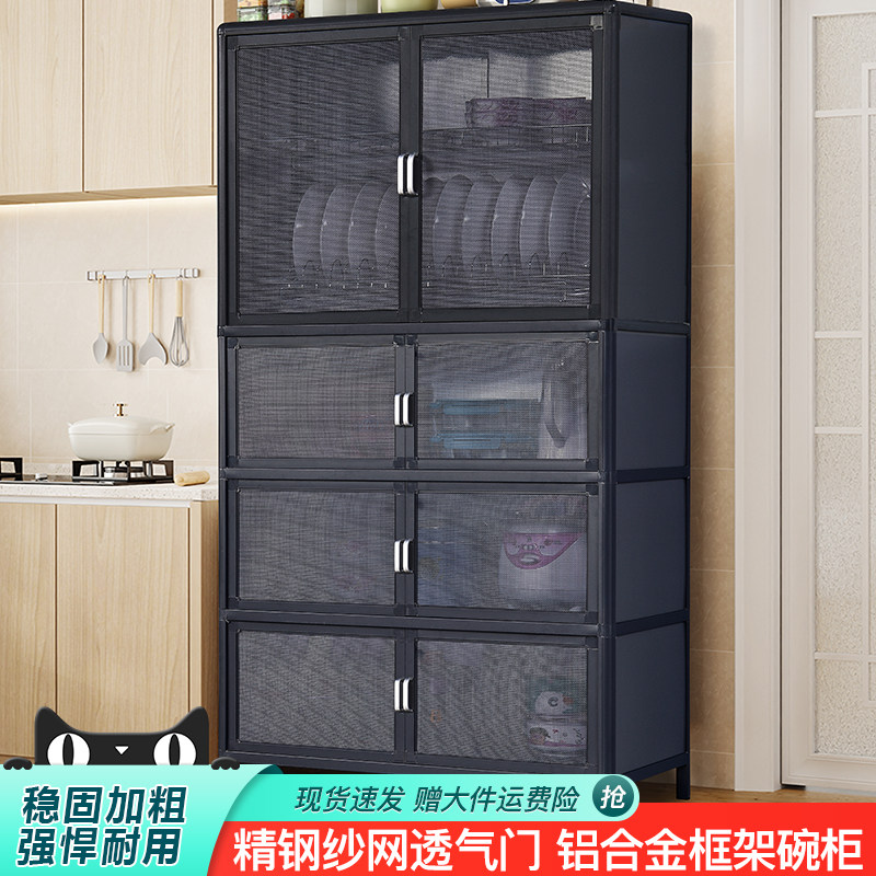 厨房置物架多层不锈钢纱网储物柜铝合金L家用放碗柜收纳柜橱柜