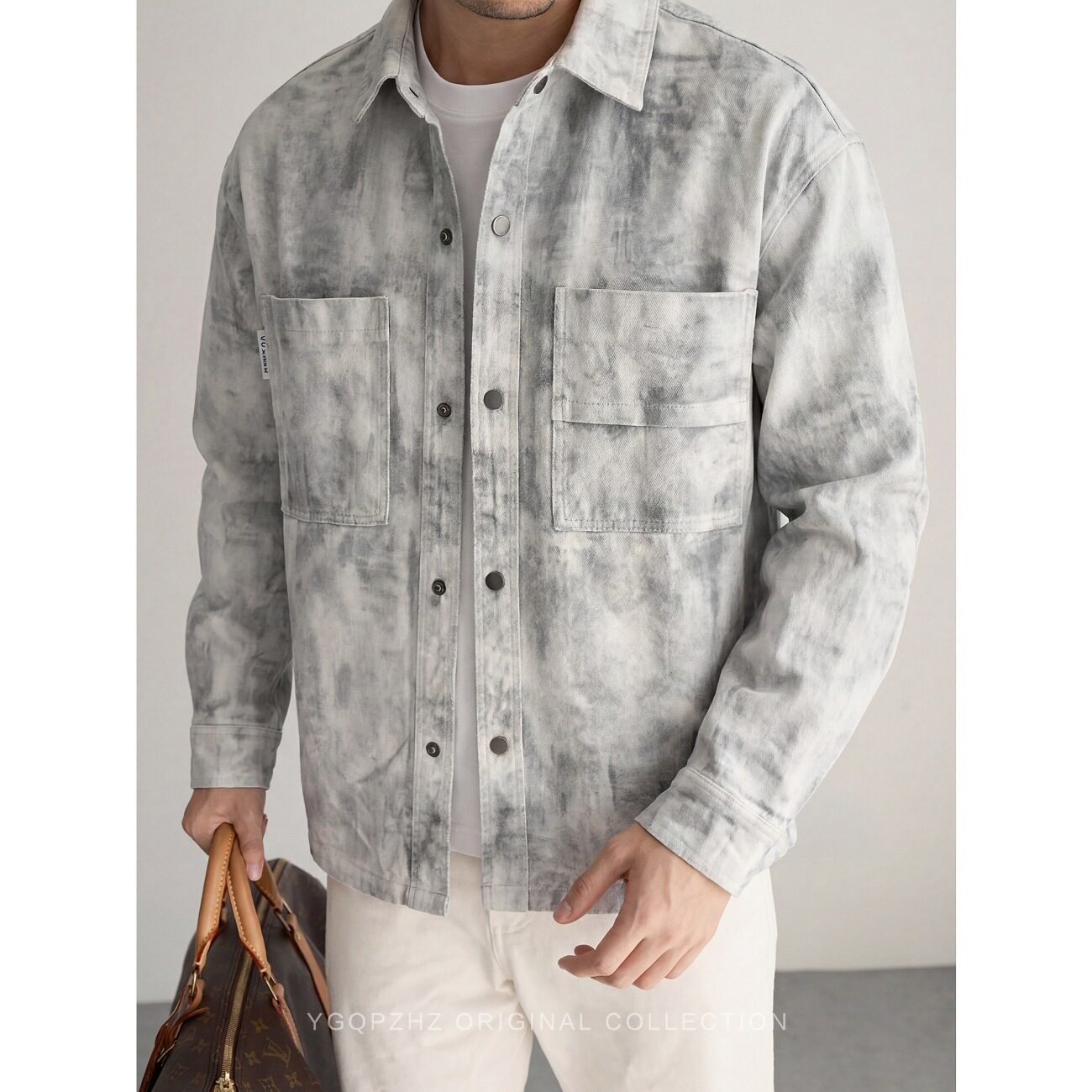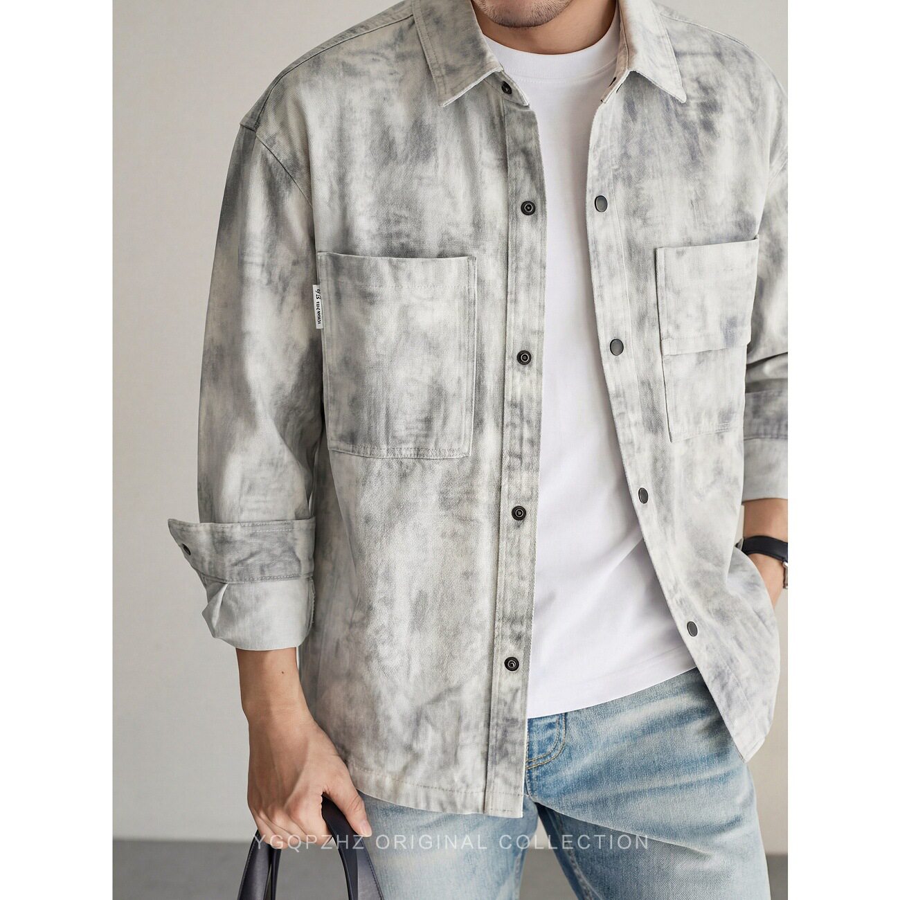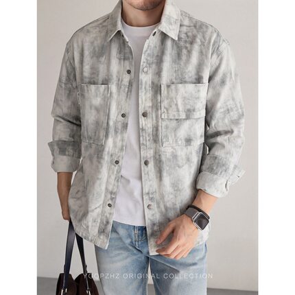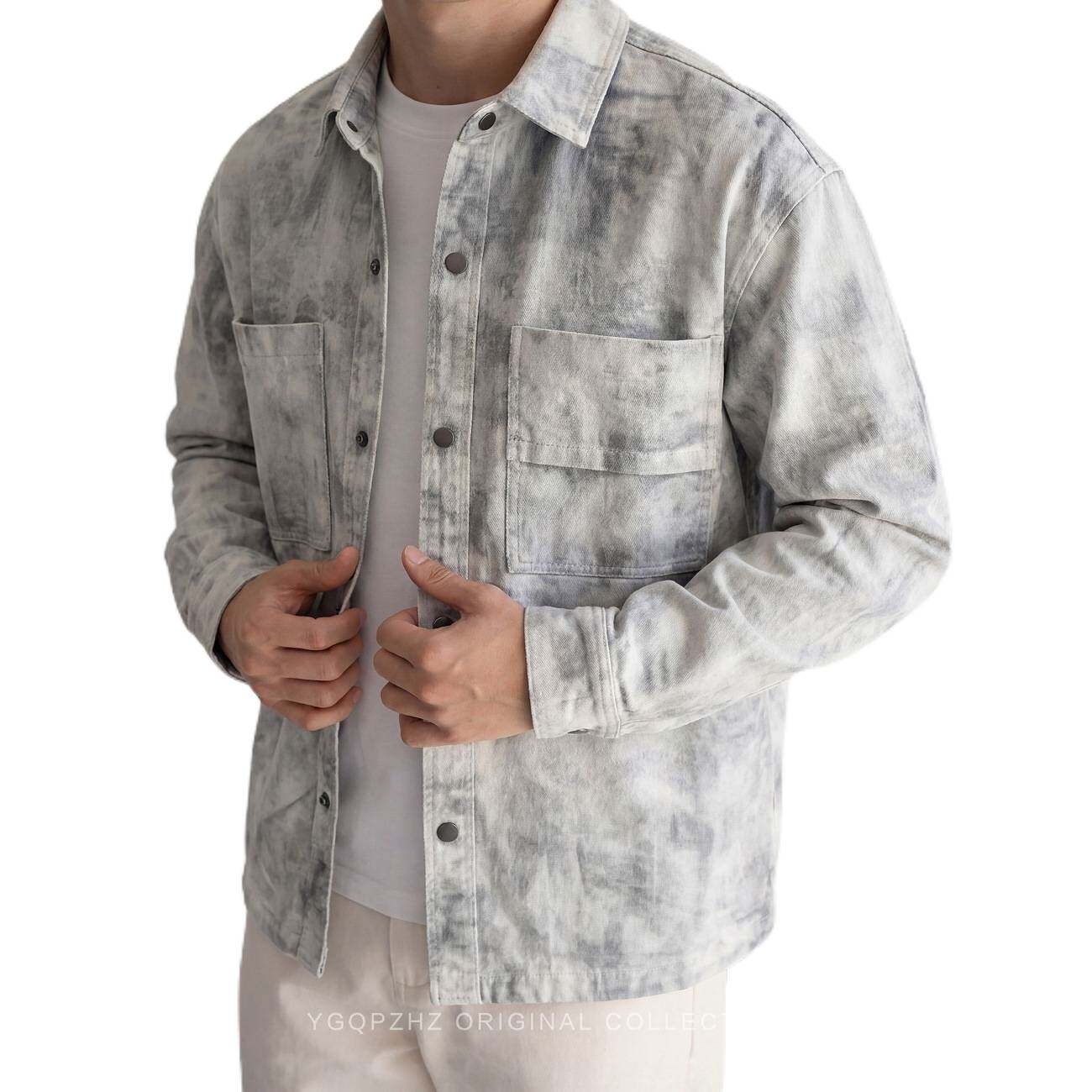 2026春季焕新高级感重工轧染水洗工装衬衫男士宽松长袖衬衣外套男