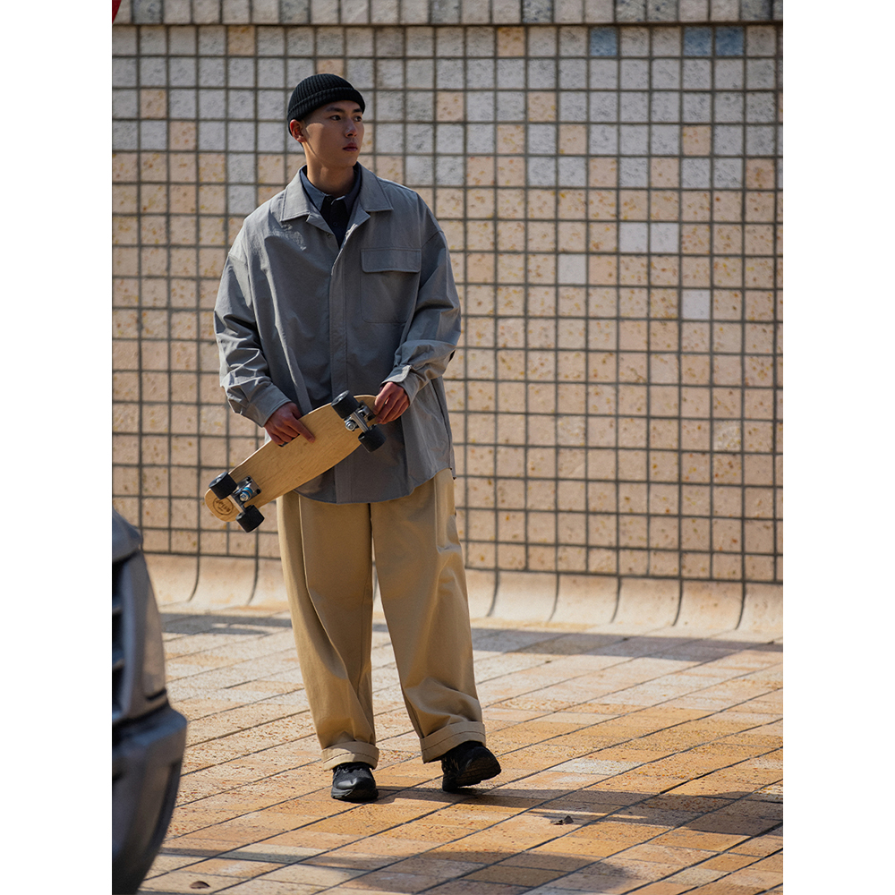 NOEARS卡其色工装日系复古cityboy宽松休闲裤男松紧腰百搭高街潮