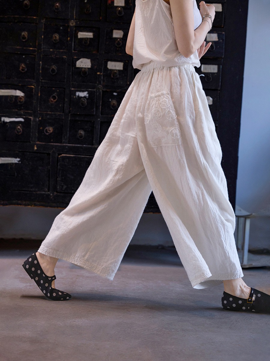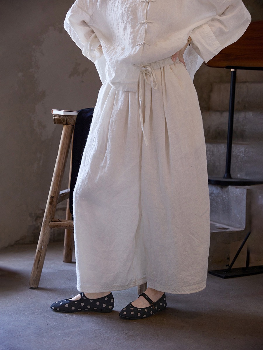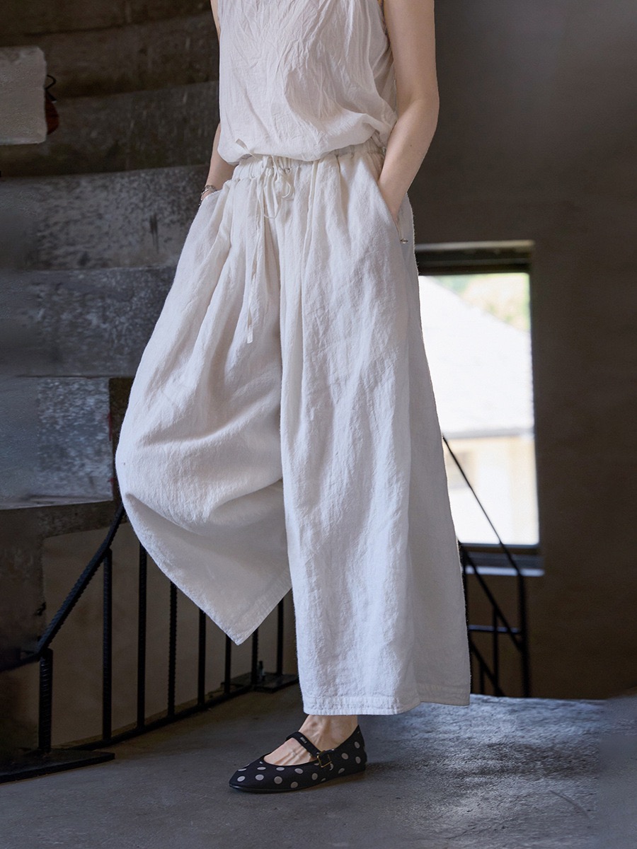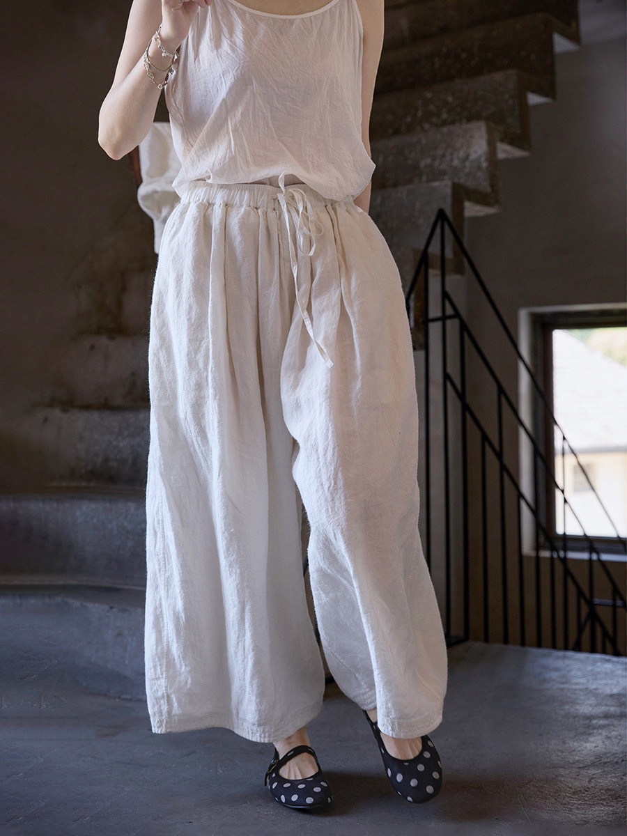 清新夏日【民艺】夏款东方白苎麻轻盈亲肤宽松禅意气球裤5616-1