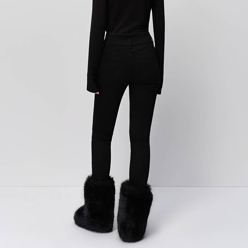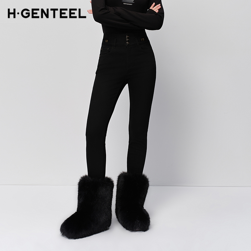 【复古松弛】H·GENTEEL荷高2025新款冬女水洗加绒修身小脚牛仔裤
