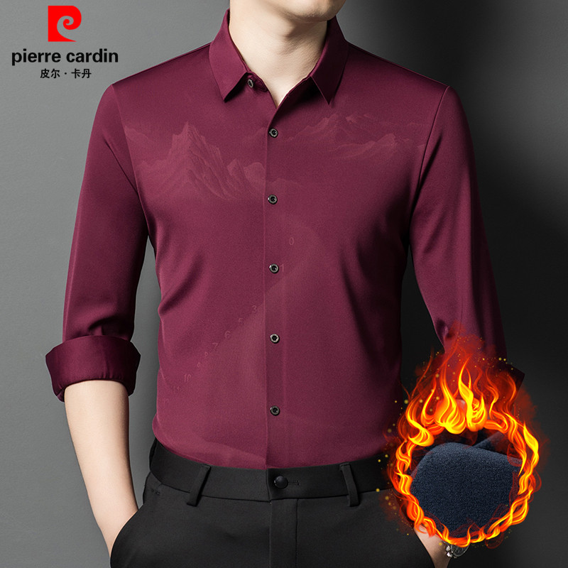 皮尔卡丹冬季一体绒保暖免烫衬衫