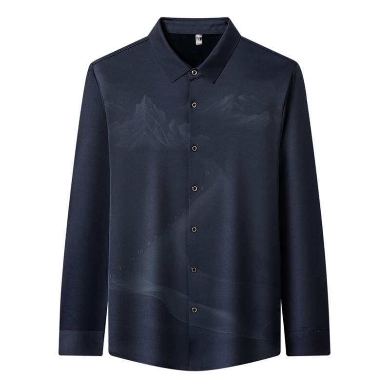 皮尔卡丹冬季无痕长袖翻领印花衬衫加绒加厚商务休闲保暖免烫衬衣