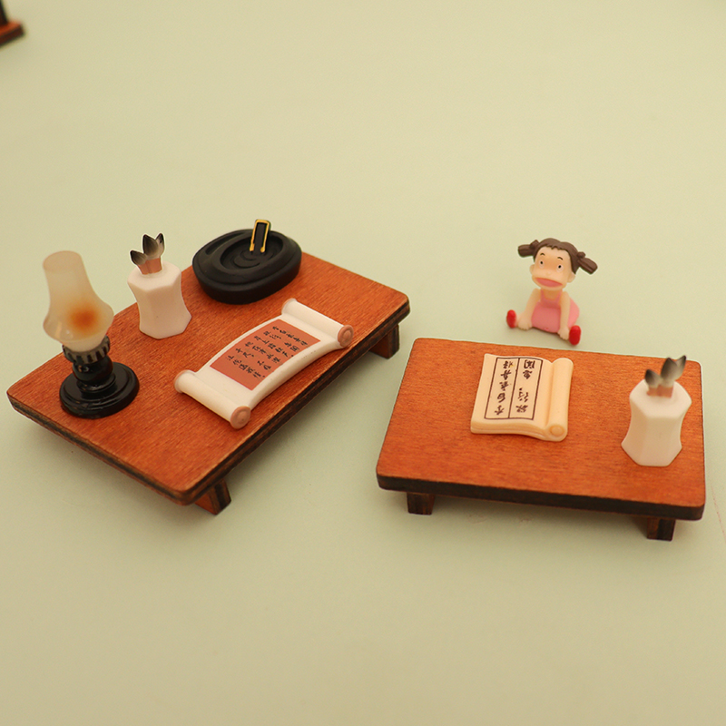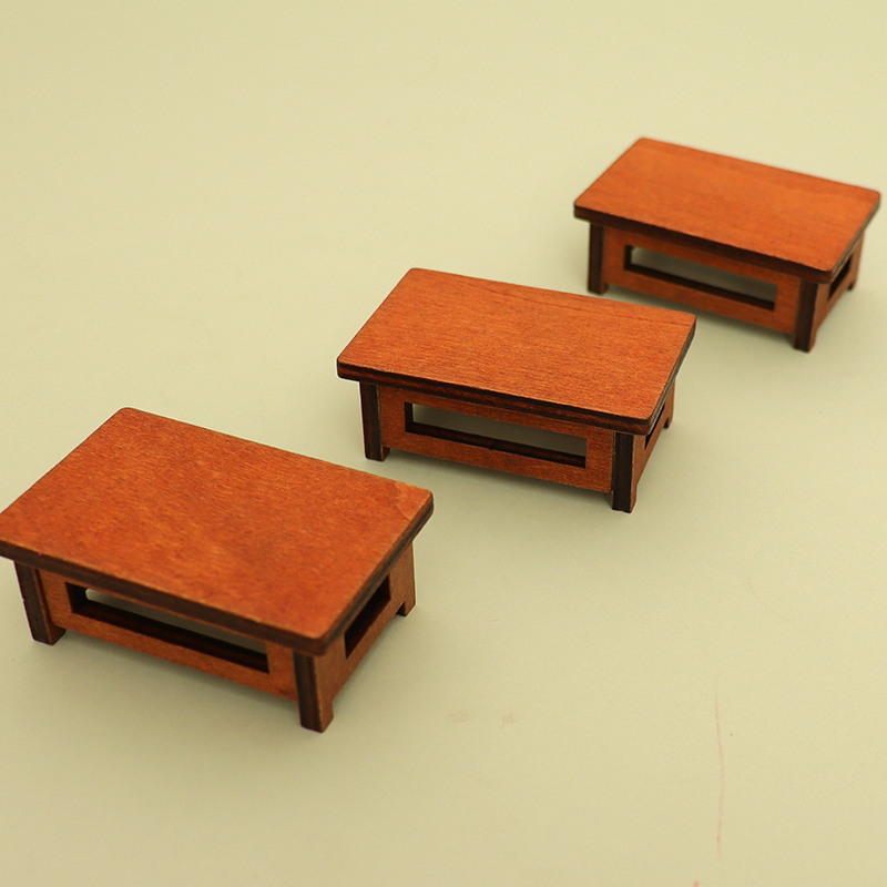 1:12微缩迷你桌子木质日式家具餐桌茶几矮方桌娃娃屋场景装饰摆件