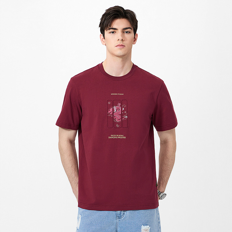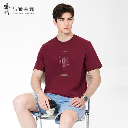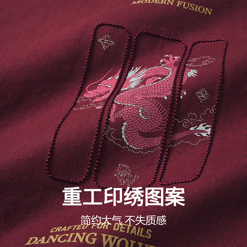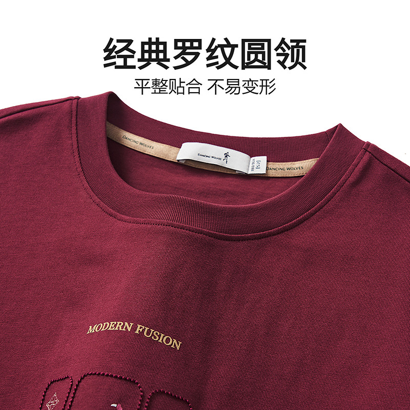 【绣印】与狼共舞抗菌短袖T恤男2025夏季新款新年红色圆领内搭短t