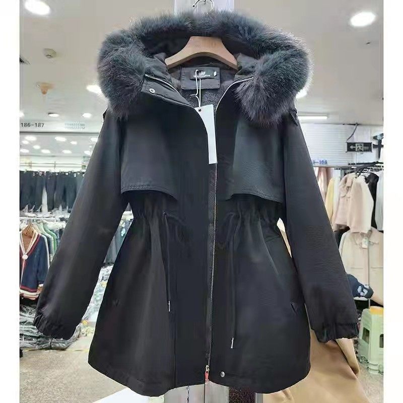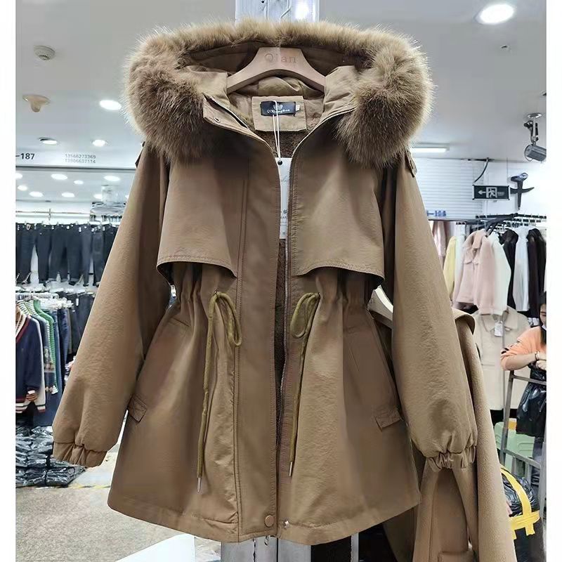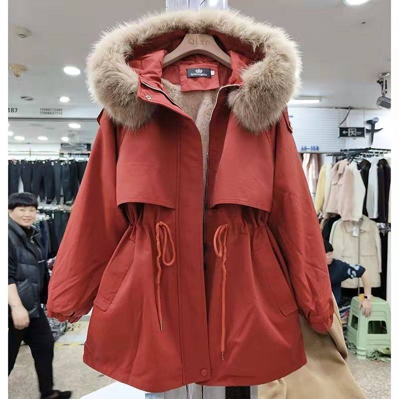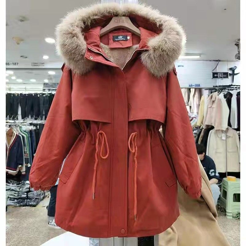 爆款红色加绒加厚工装派克服棉衣女2025年冬季新款小个子显瘦棉服