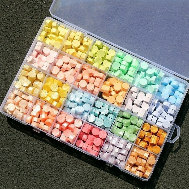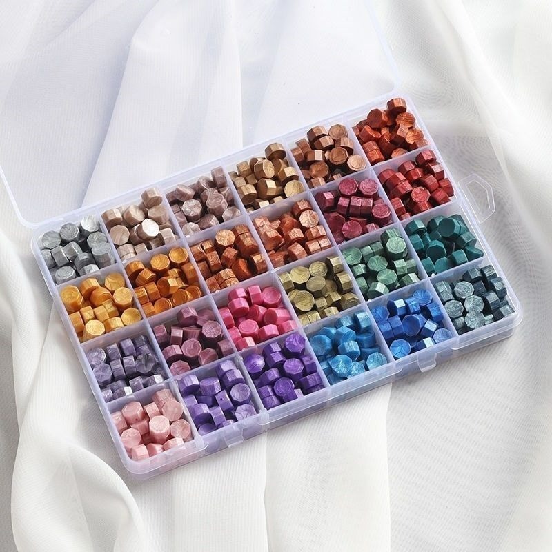 24色盒装珠光火漆蜡粒信封喜帖请柬邀请函火漆印章封印穷人家