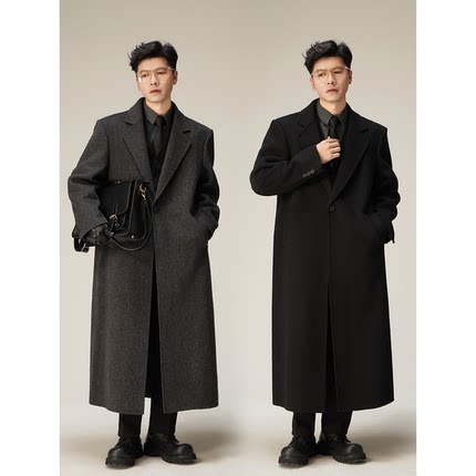 【PEICHUAN】秋冬新品男士过膝长款垫肩双面毛呢大衣羊毛呢子外套
