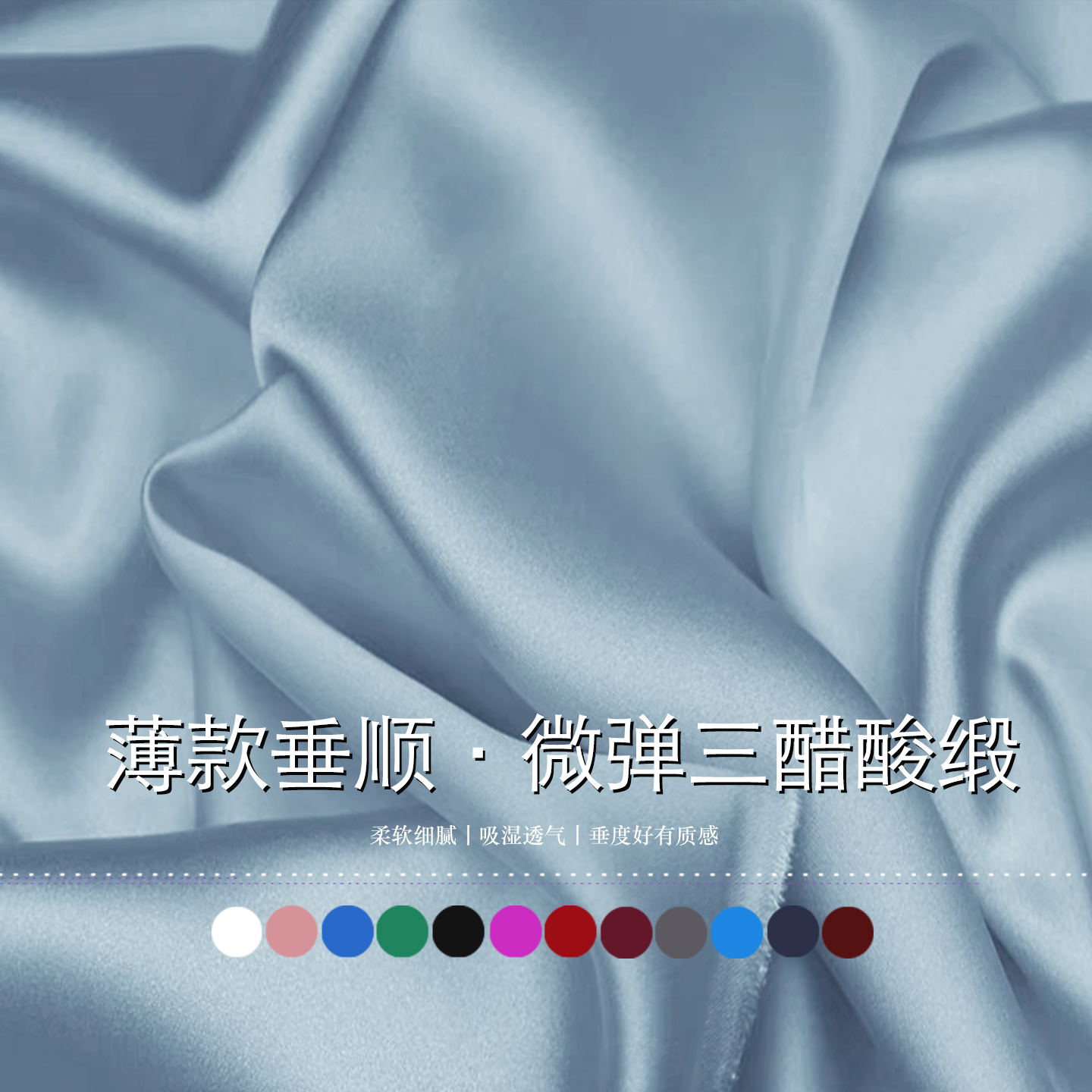 春夏薄款三醋酸缎面布料日本进口醋酸弹力真丝质感服装面料里布