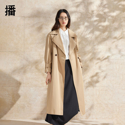 播卡其色翻领风衣女商场同款2024春新款韩系中长款外套BDR1FD0096