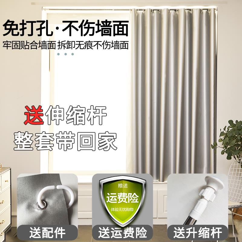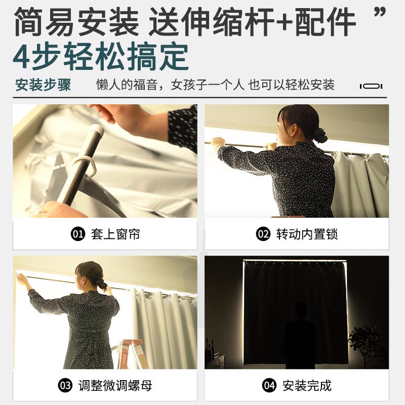 隔热全遮光布免打孔安装遮阳卫生间卧室空调隔断门帘窗帘杆一整套