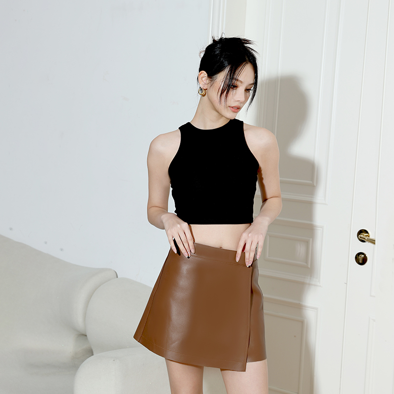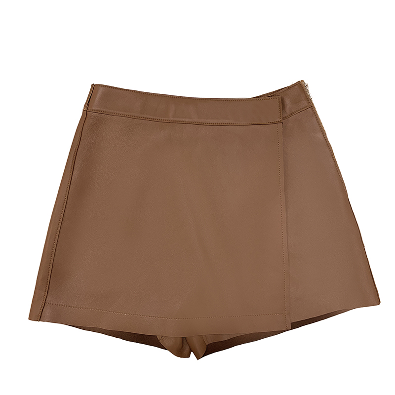 茉萱进口绵羊皮百搭裙裤假两件高腰半身a字短裙真皮阔腿短裤时尚