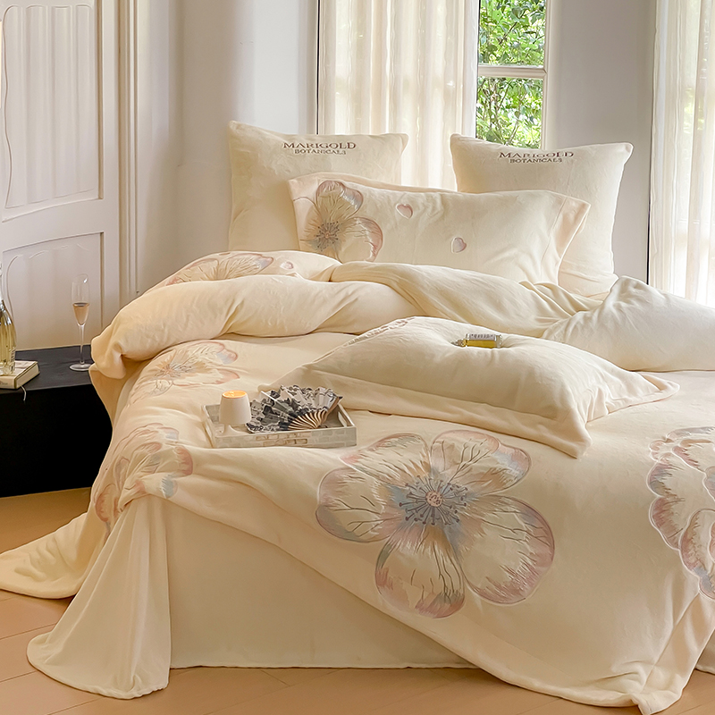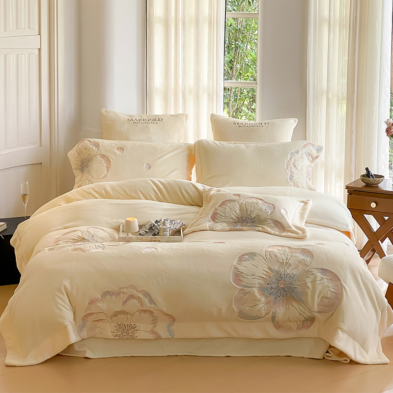 居家高端花卉刺绣加厚牛奶绒四件套冬款珊瑚绒双面绒保暖床上用品