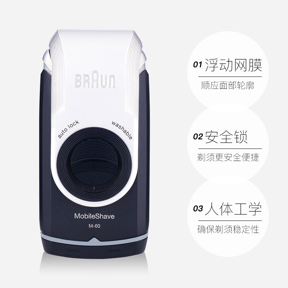 【自营】博朗电动剃须刀便携迷你M60往复干电池式刮胡刀差旅车载