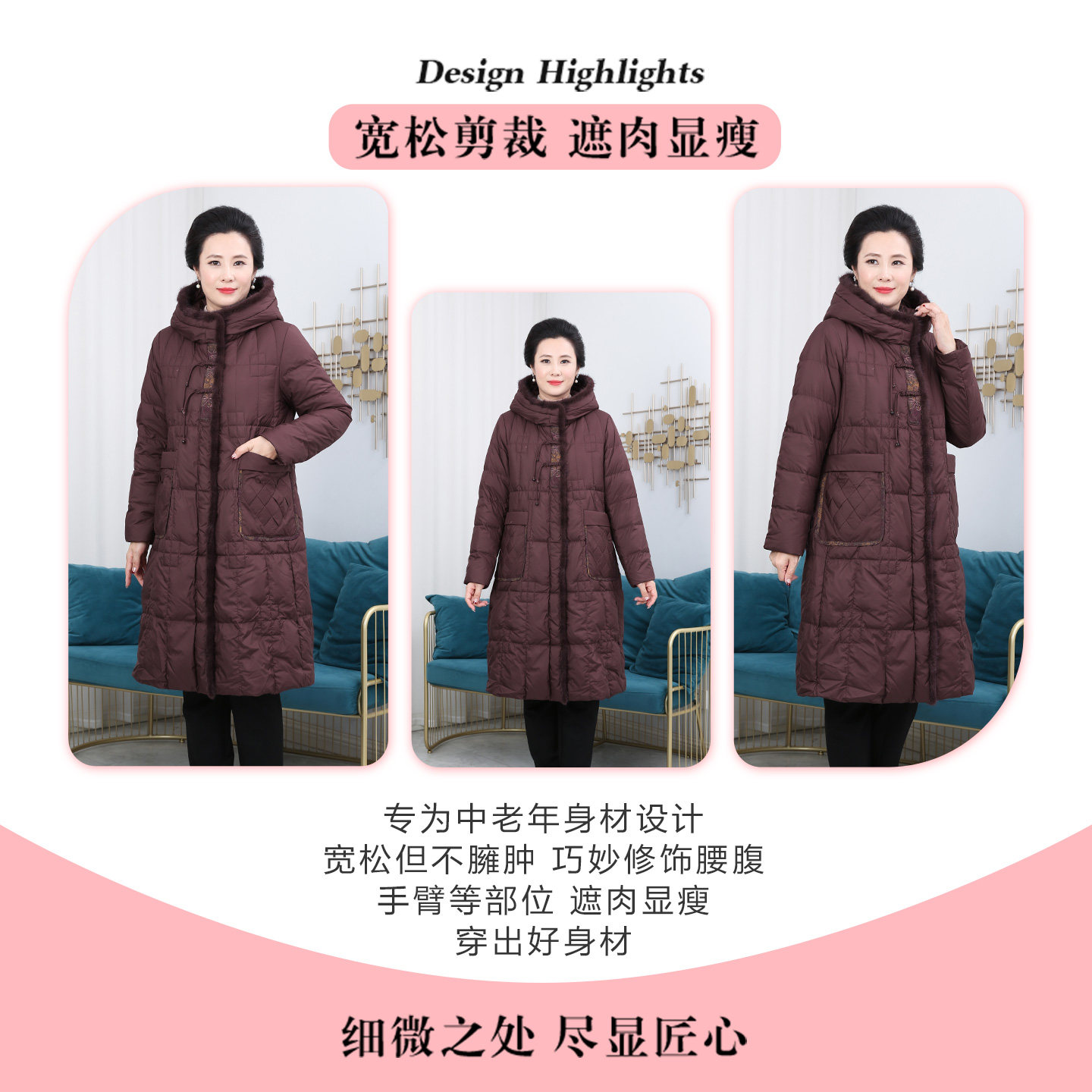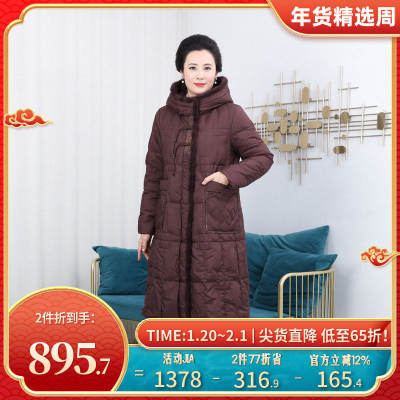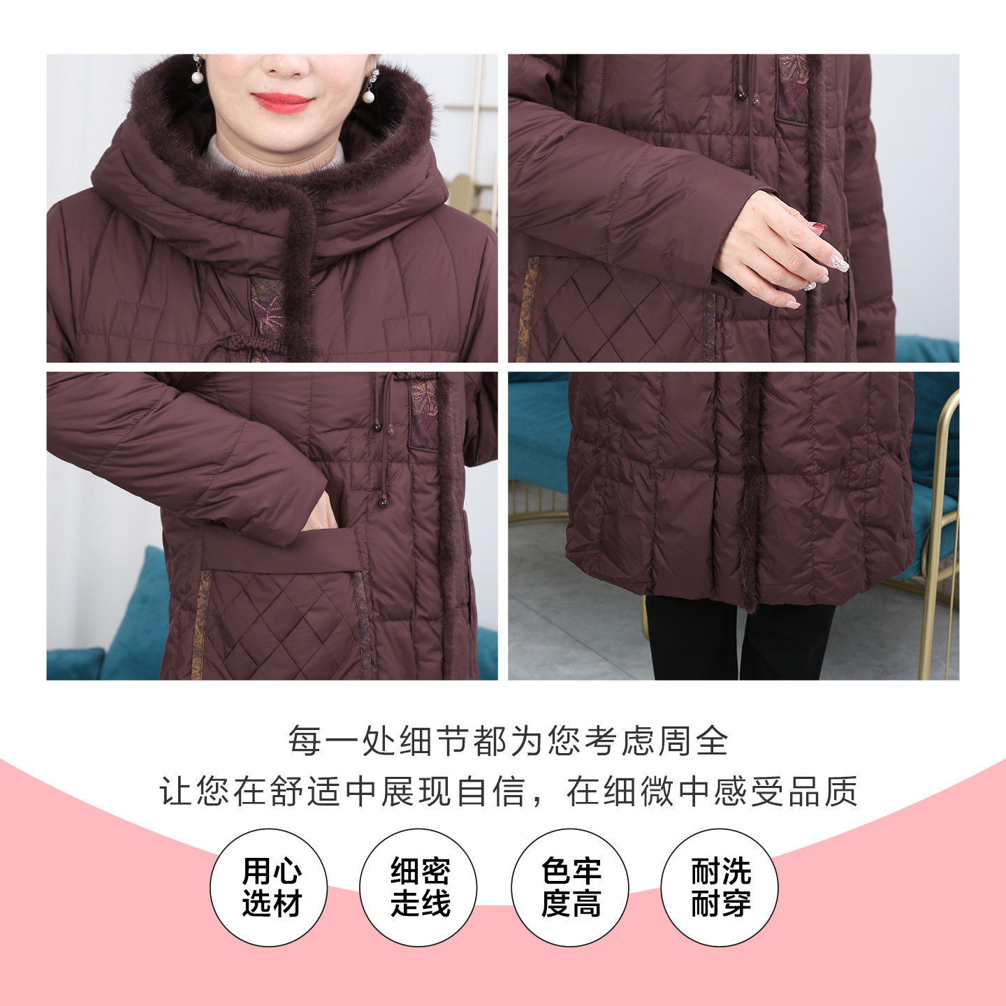 依佈中老年人国风鹅绒服冬装新款长款羽绒服妈妈装水貂毛条外套