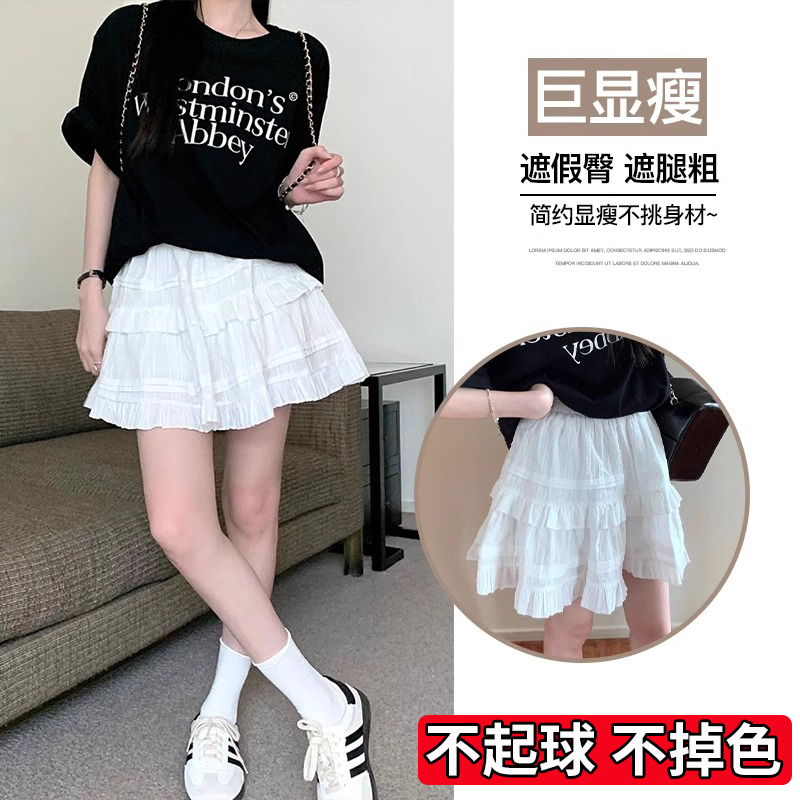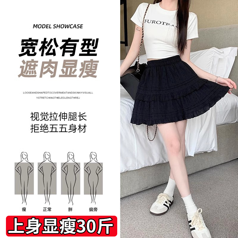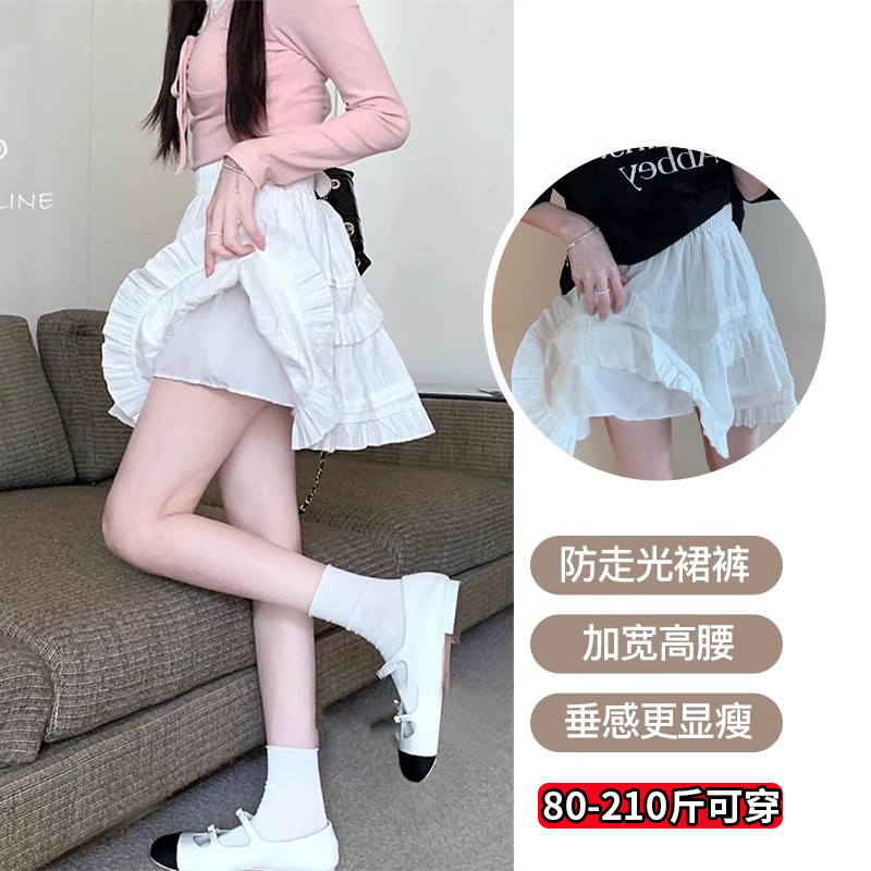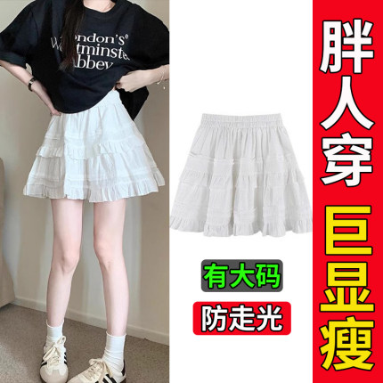 大码胖mm白色蕾丝短裙女春夏2025年新款蛋糕裙高腰a字蓬蓬半身裙