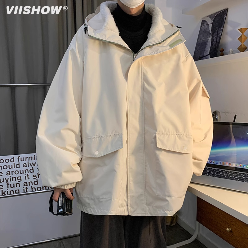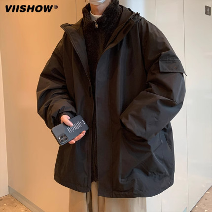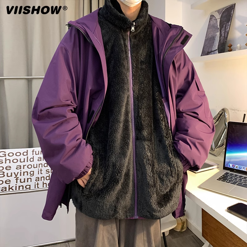 VISHOW三合一冲锋夹克男秋冬季加绒加厚防羊羔绒棉衣潮牌夹克外