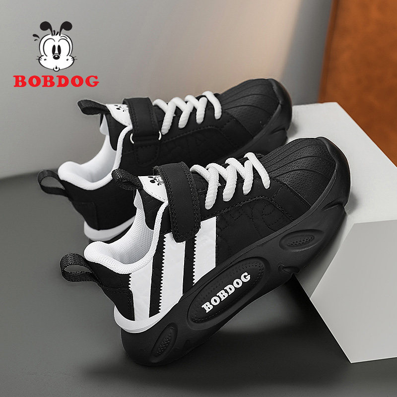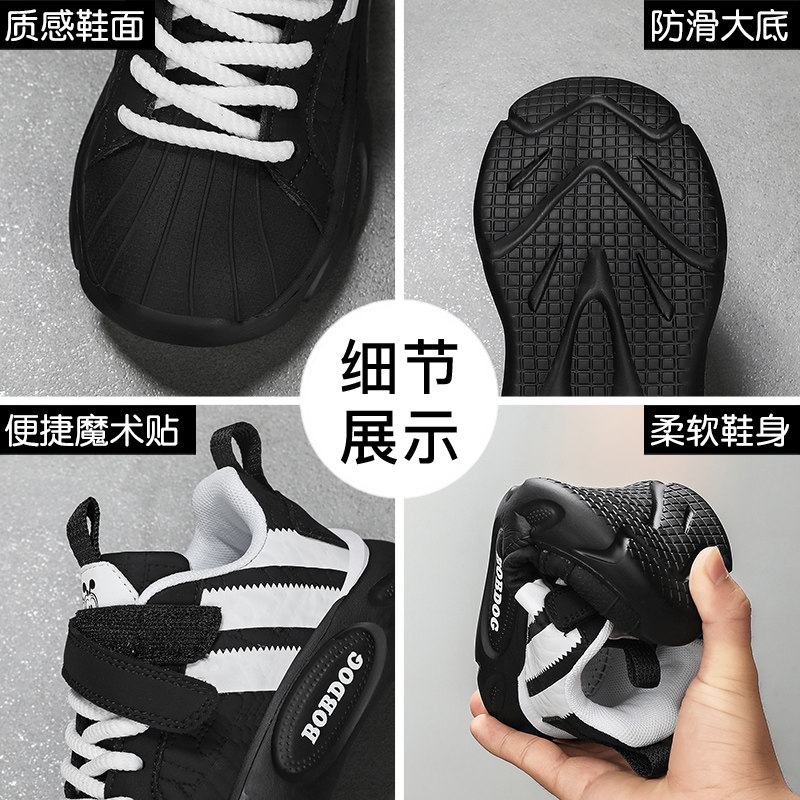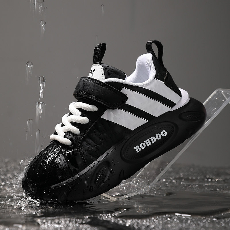 巴布豆男童鞋子秋冬款皮面防水中大童软底跑步鞋女孩休闲百搭板鞋