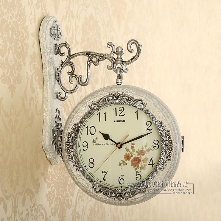 欧式简约复古丽盛钟表双面挂钟创意石英钟静音两面现代挂钟客厅