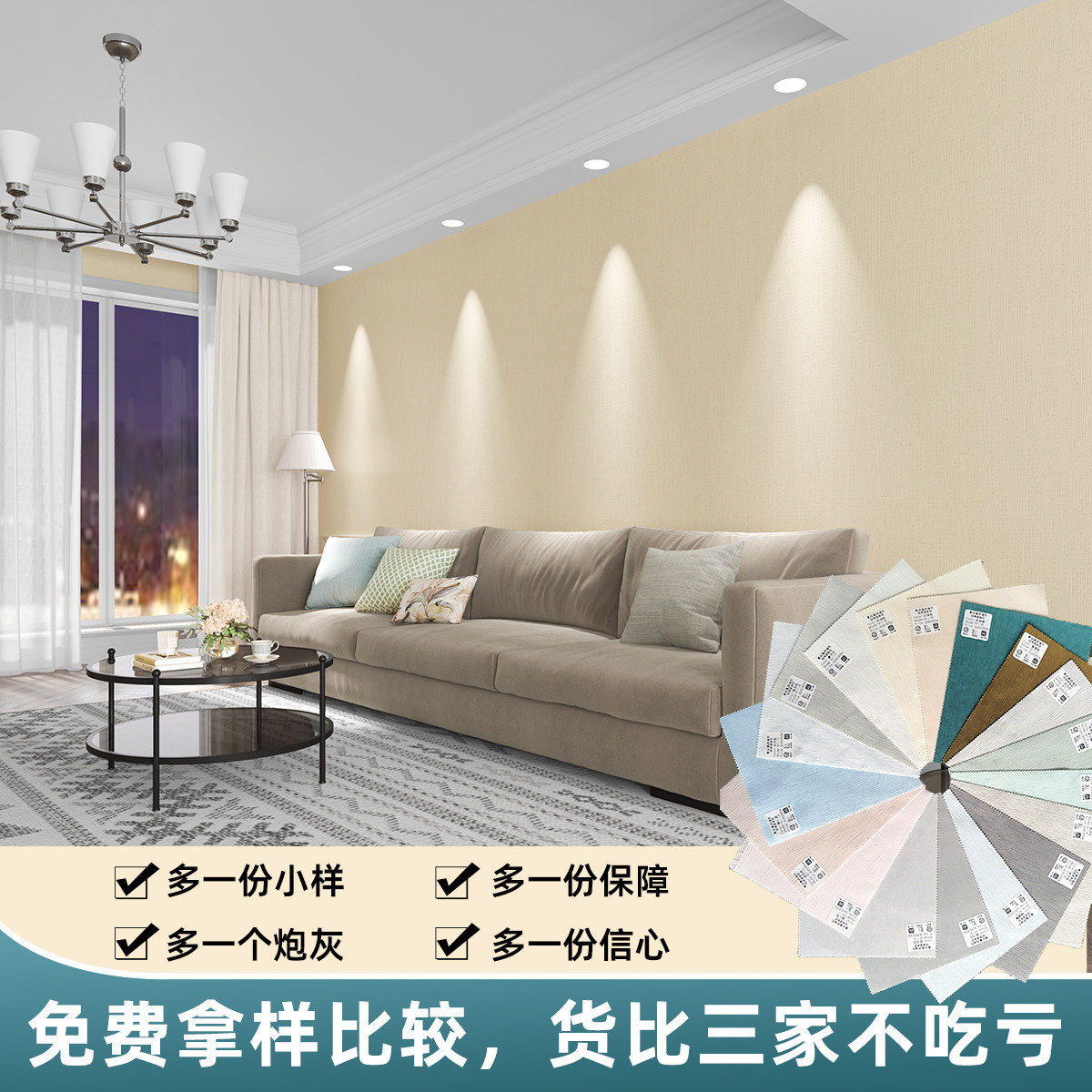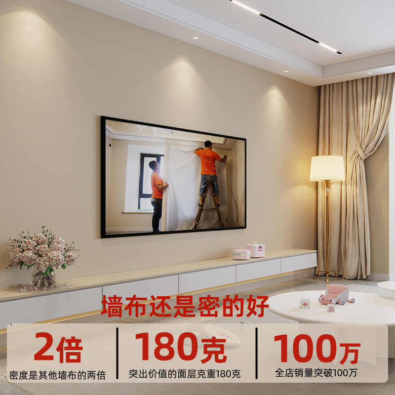2026高精密墙布无缝全屋卧室客厅素色墙纸奶油背景灰色壁布包安装
