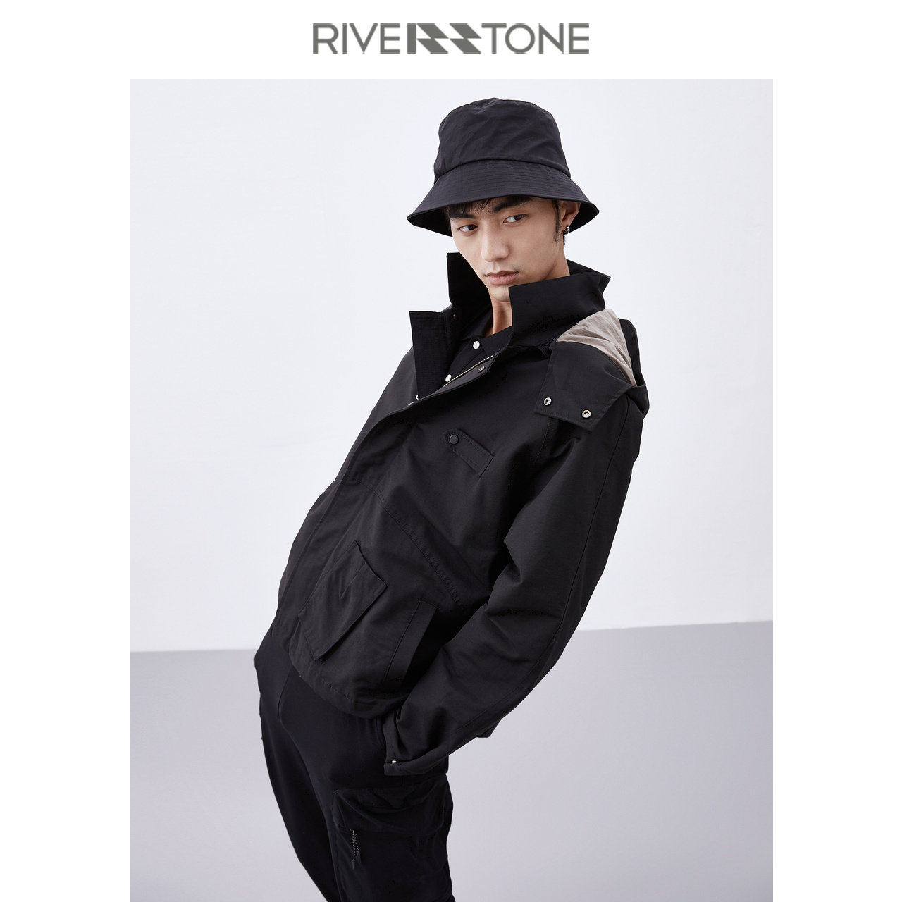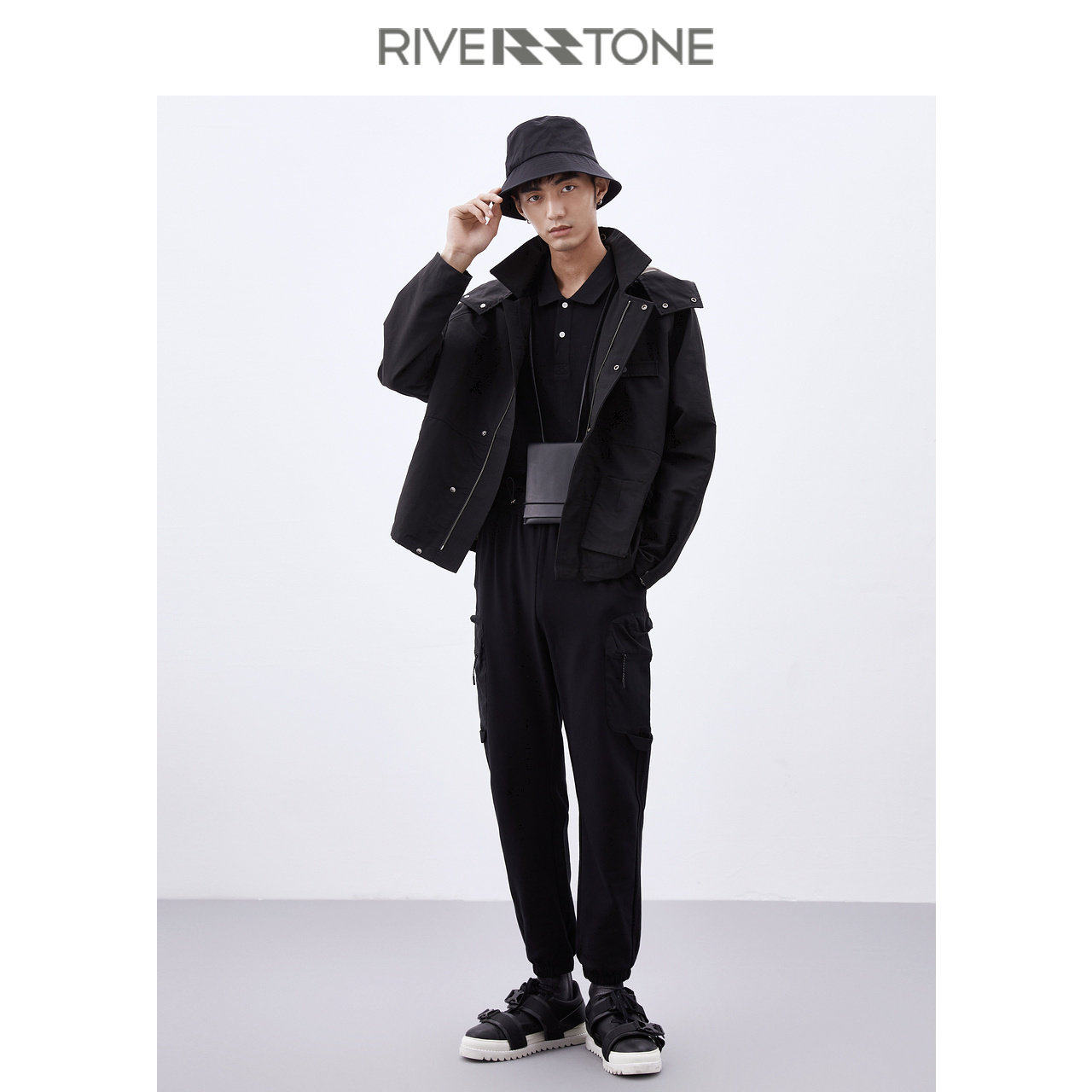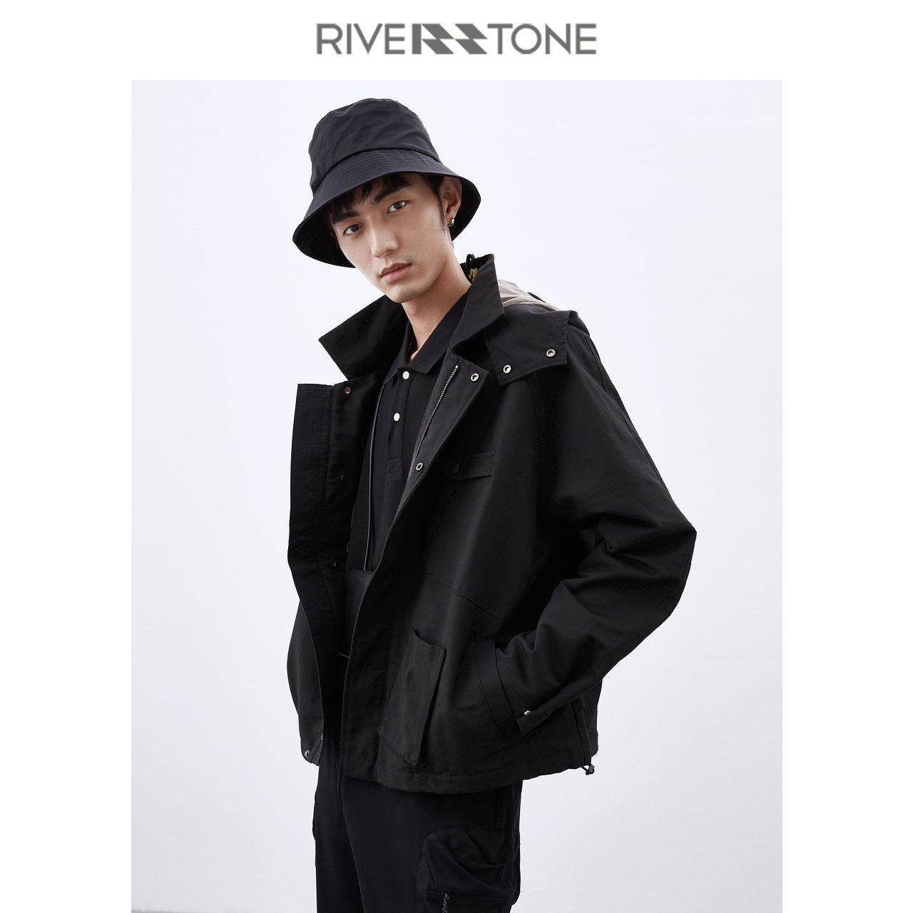 流石男装连帽短款夹克2026新款春季休闲黑色外套新款宽松时尚男款