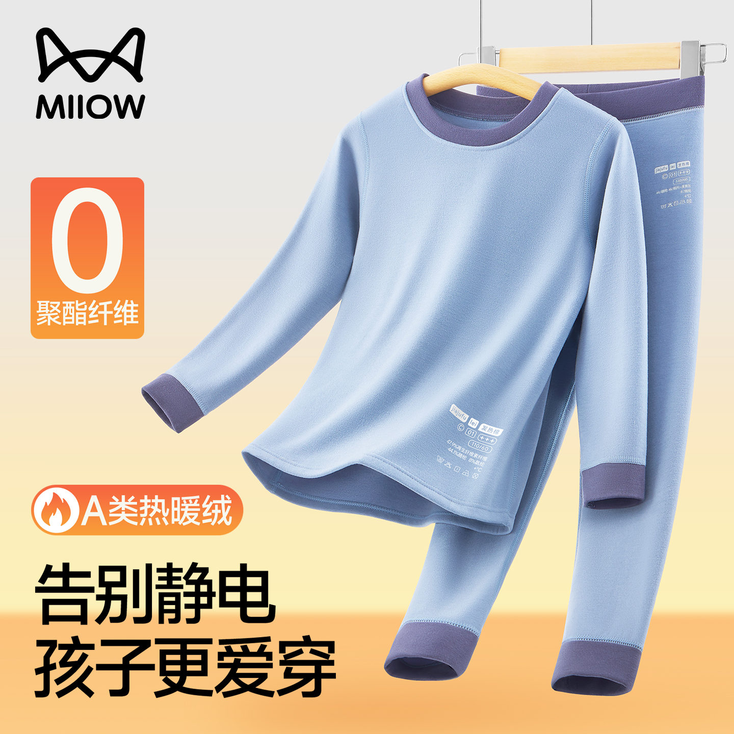 猫人a类儿童保暖内衣套装男童冬季加绒加厚女童秋衣秋裤绒德新款
