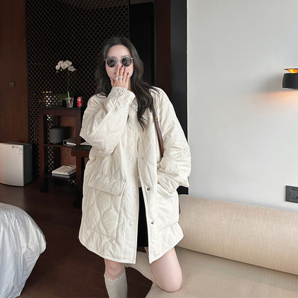 金苏一 麻料压棉棉衣女2025冬季韩版宽松保暖棉服休闲加厚外套潮