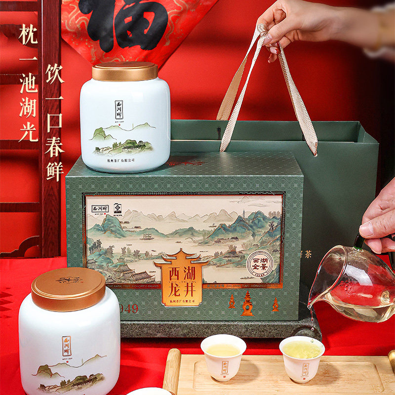 西湖牌【西湖龙井】明前特级茶绿茶叶礼盒装高档送人礼品