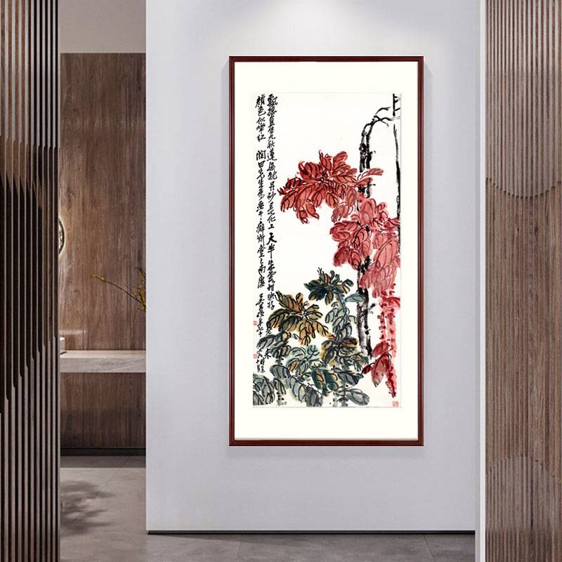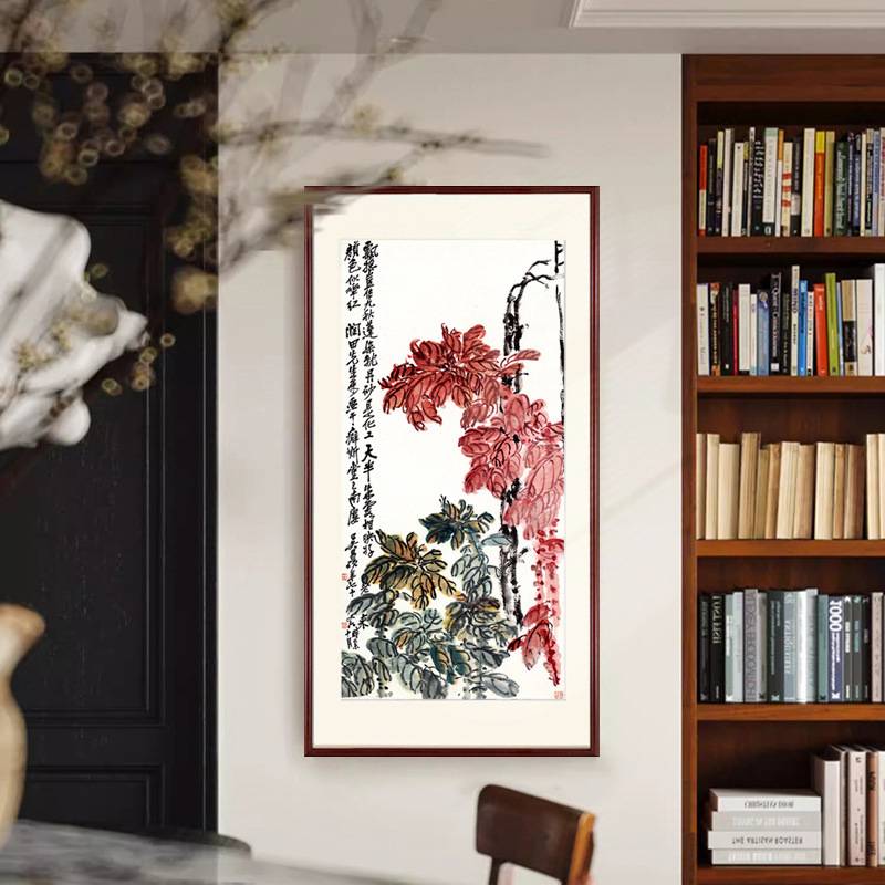 吴昌硕版画 客厅玄关装饰画花卉挂画新中式国画餐厅茶室书房壁画