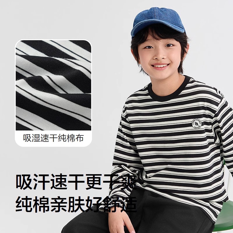 巴拉巴拉男童长袖t恤儿童条纹纯棉打底衫大童内搭2025秋新款童装