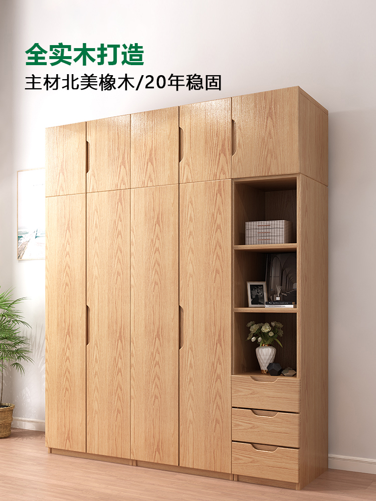 掌上明珠家具实木橡木衣柜北欧现代简约儿童储物柜子小户型全实木