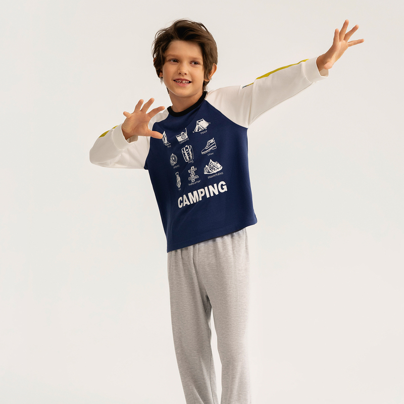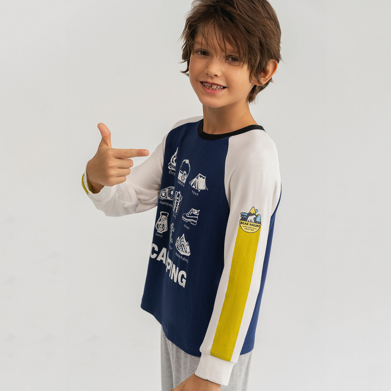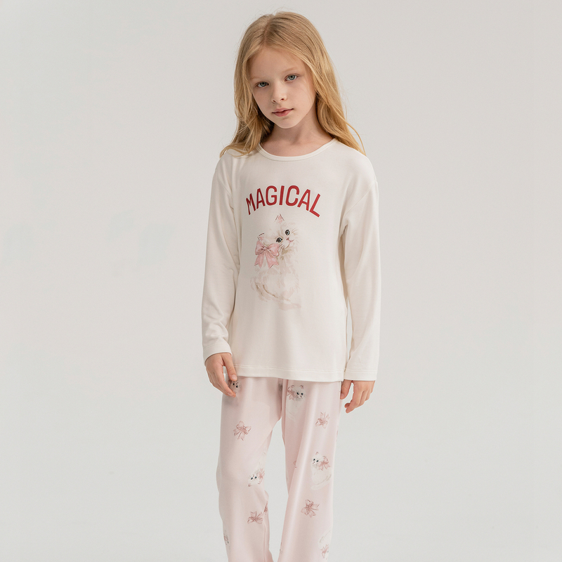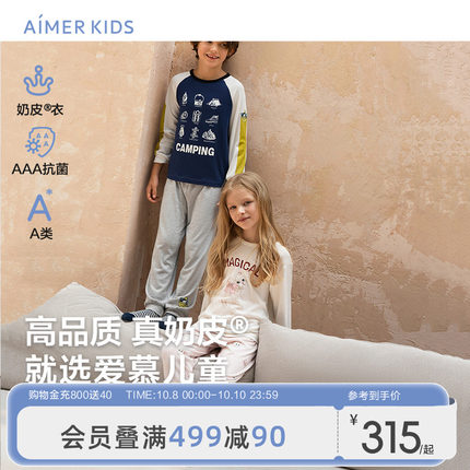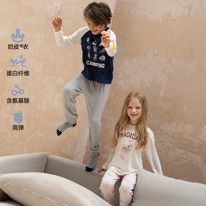 爱慕儿童男孩女孩套头家居服长袖睡衣睡裤3A抗菌秋新款|奶皮衣