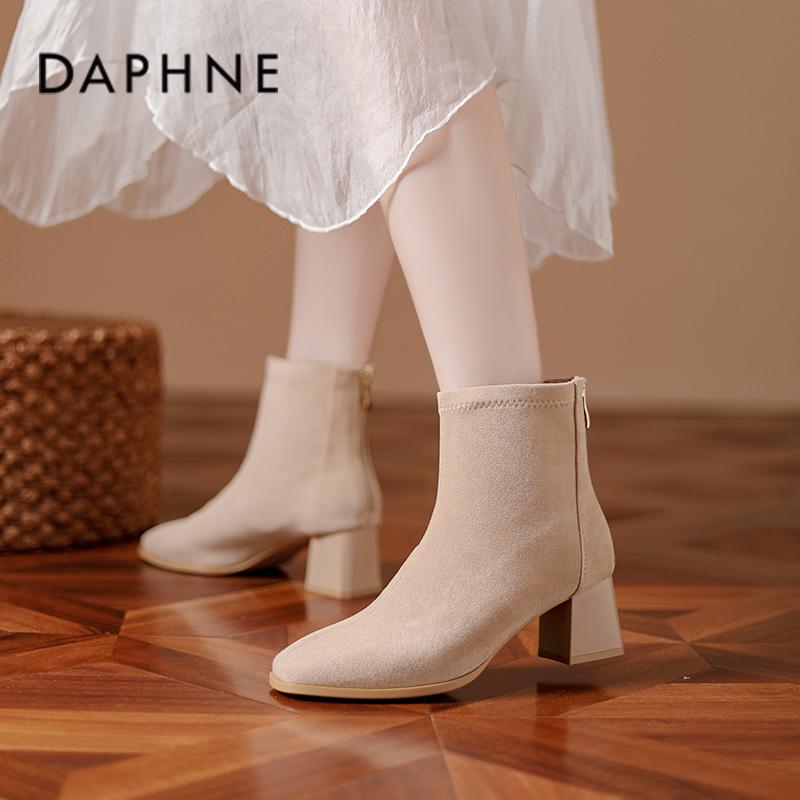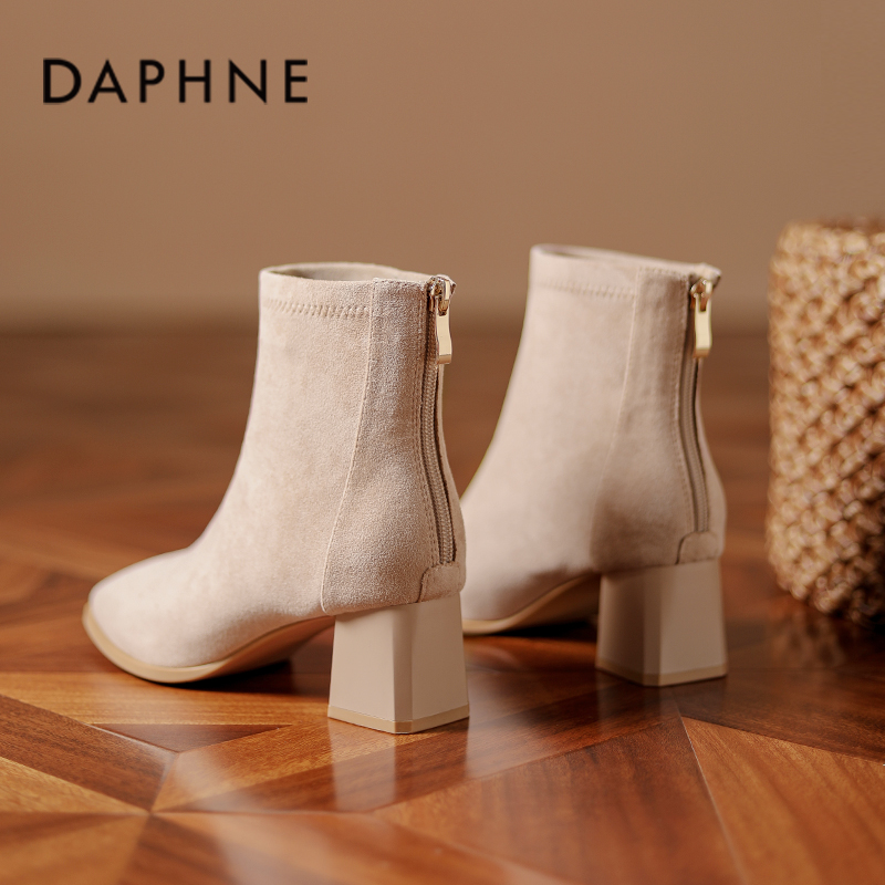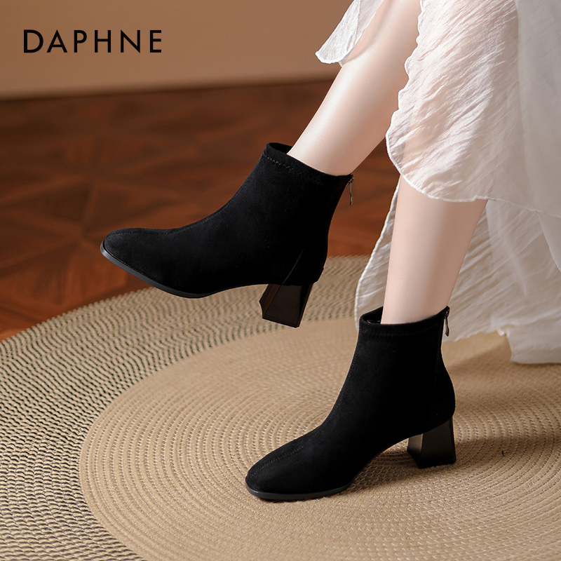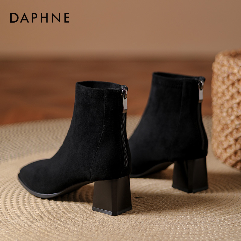 达芙妮高跟绒面短靴女单靴瘦瘦靴