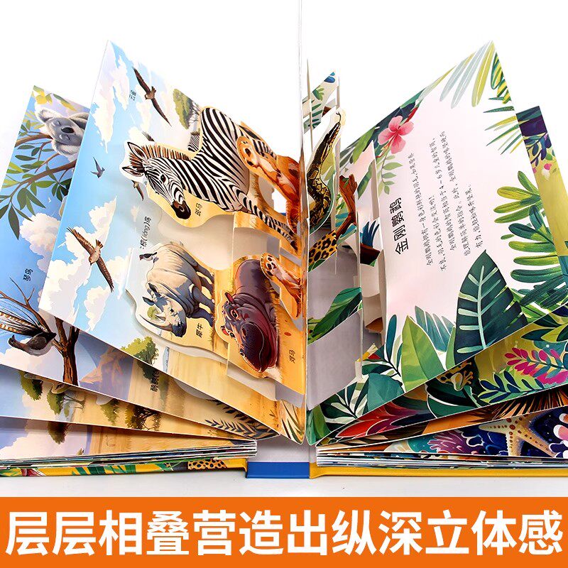抖音同款世界动物电影剧场3d立体书揭秘儿童趣味科普百科启蒙情景绘本翻翻书幼儿园3-6岁男女宝宝新年礼物早教认知图片玩具故事书