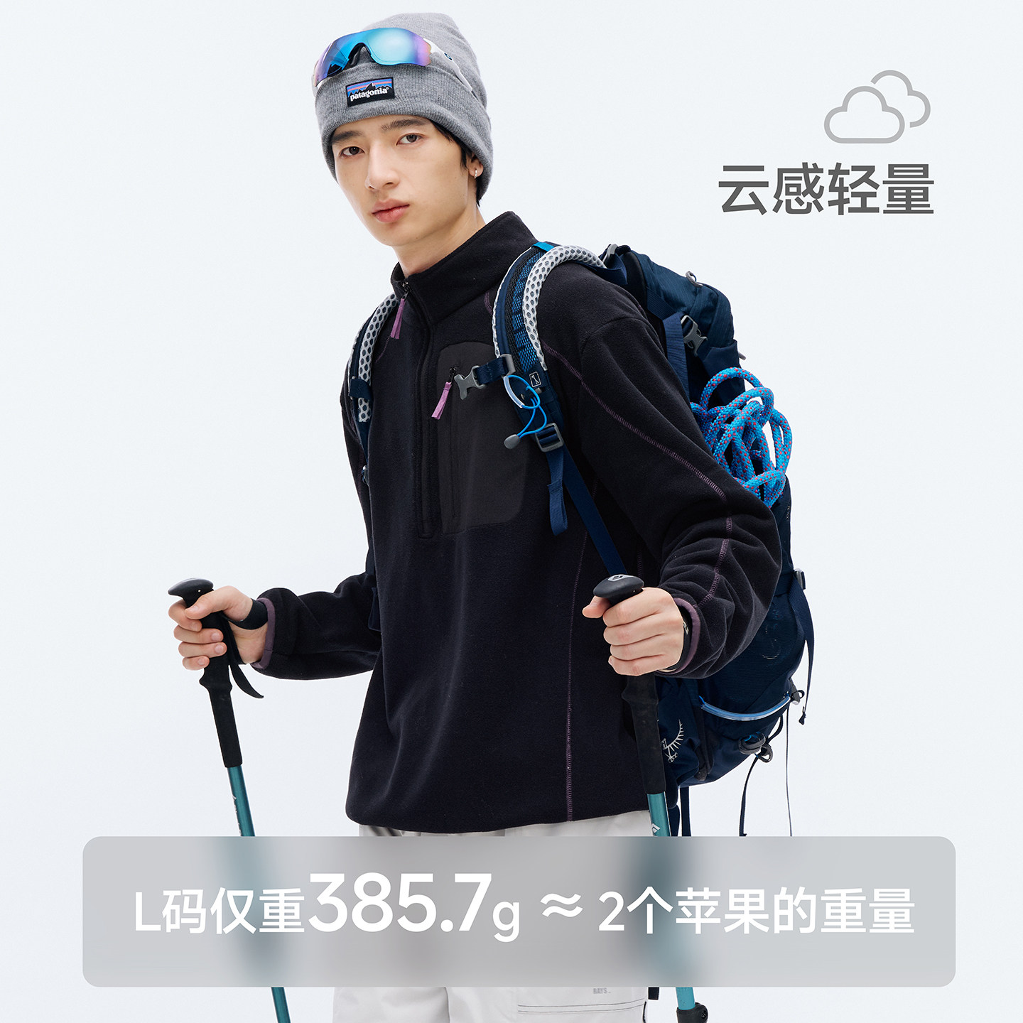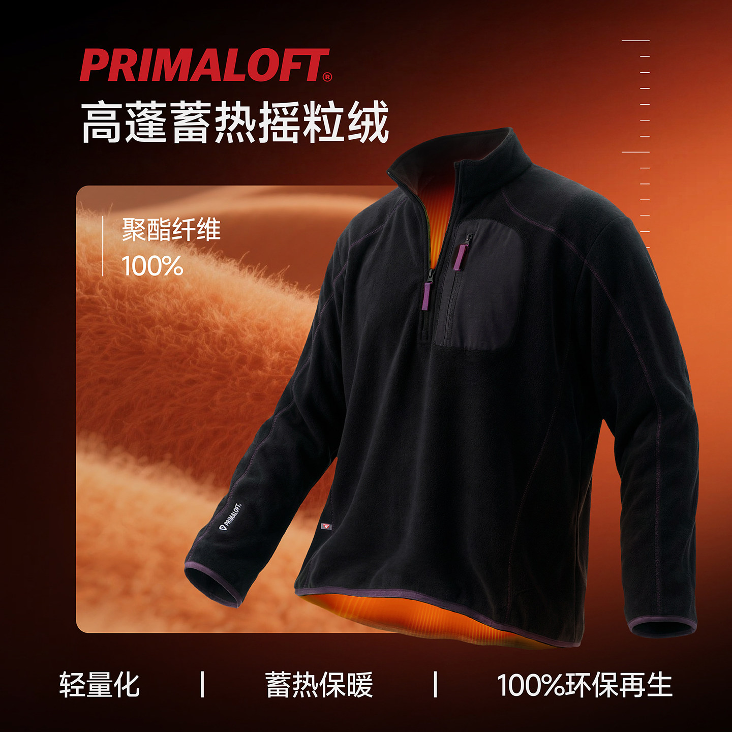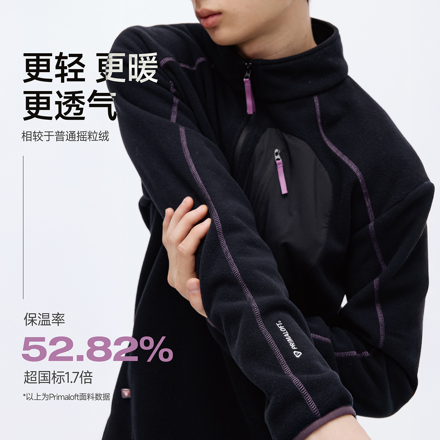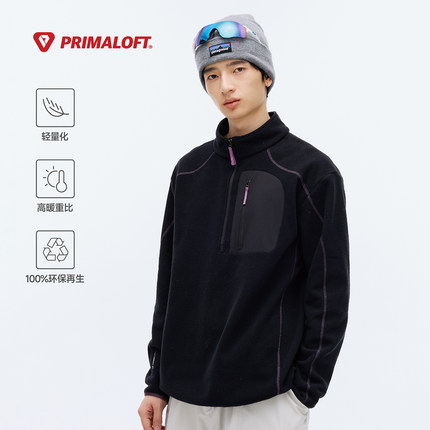 RESTICK PrimaLoft轻量高暖双面摇粒绒户外休闲立领半开襟卫衣男