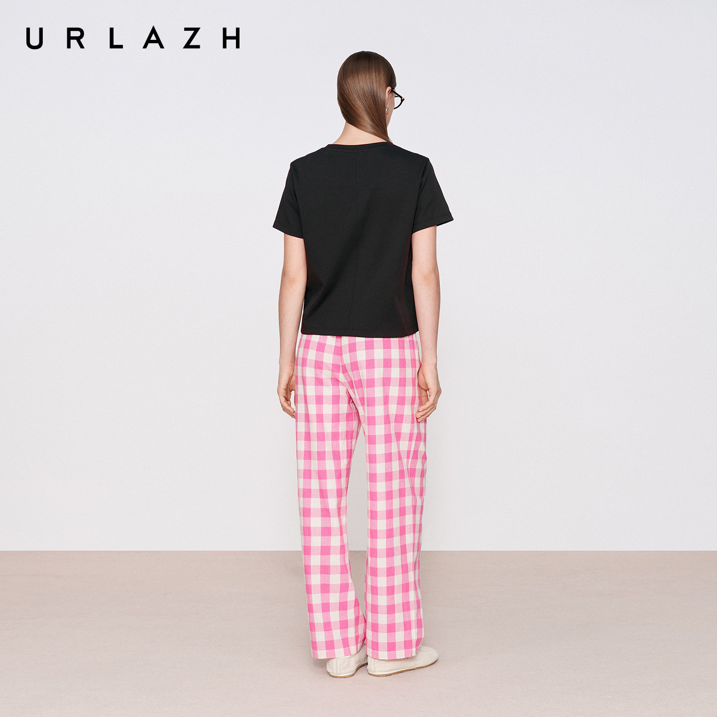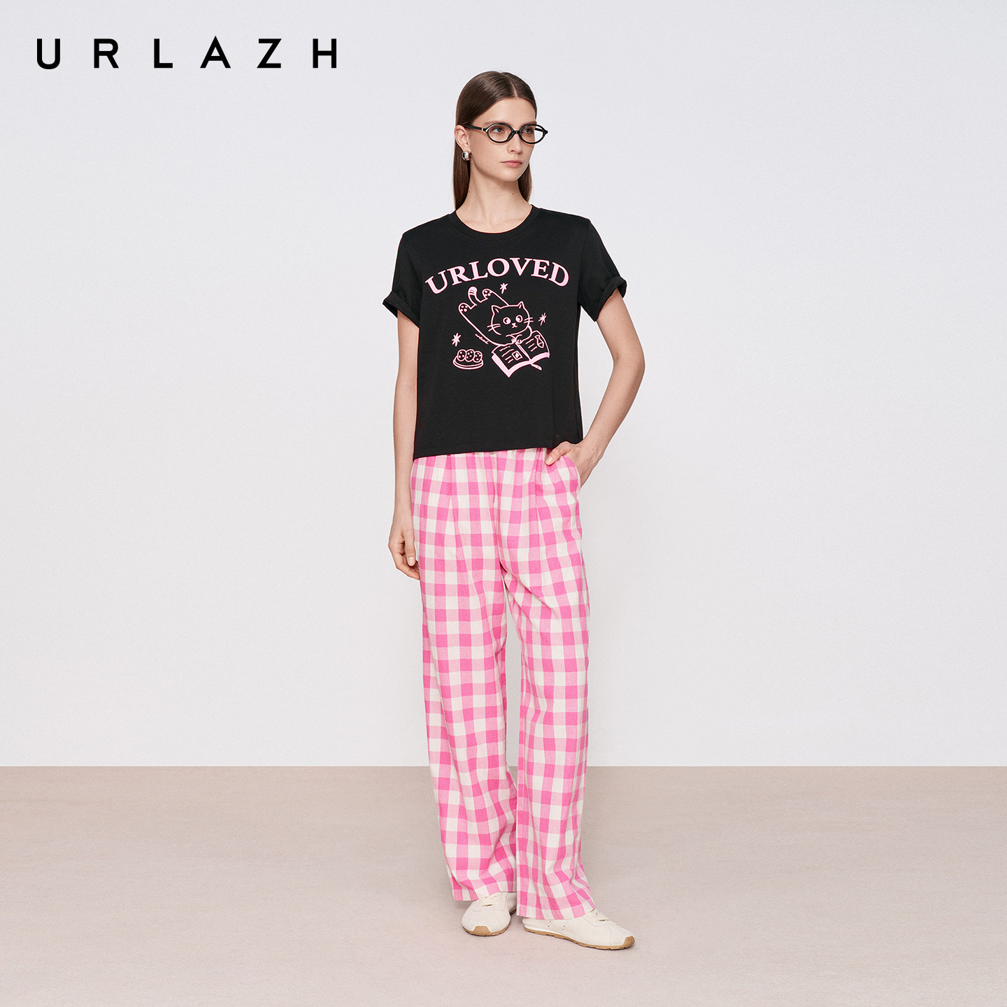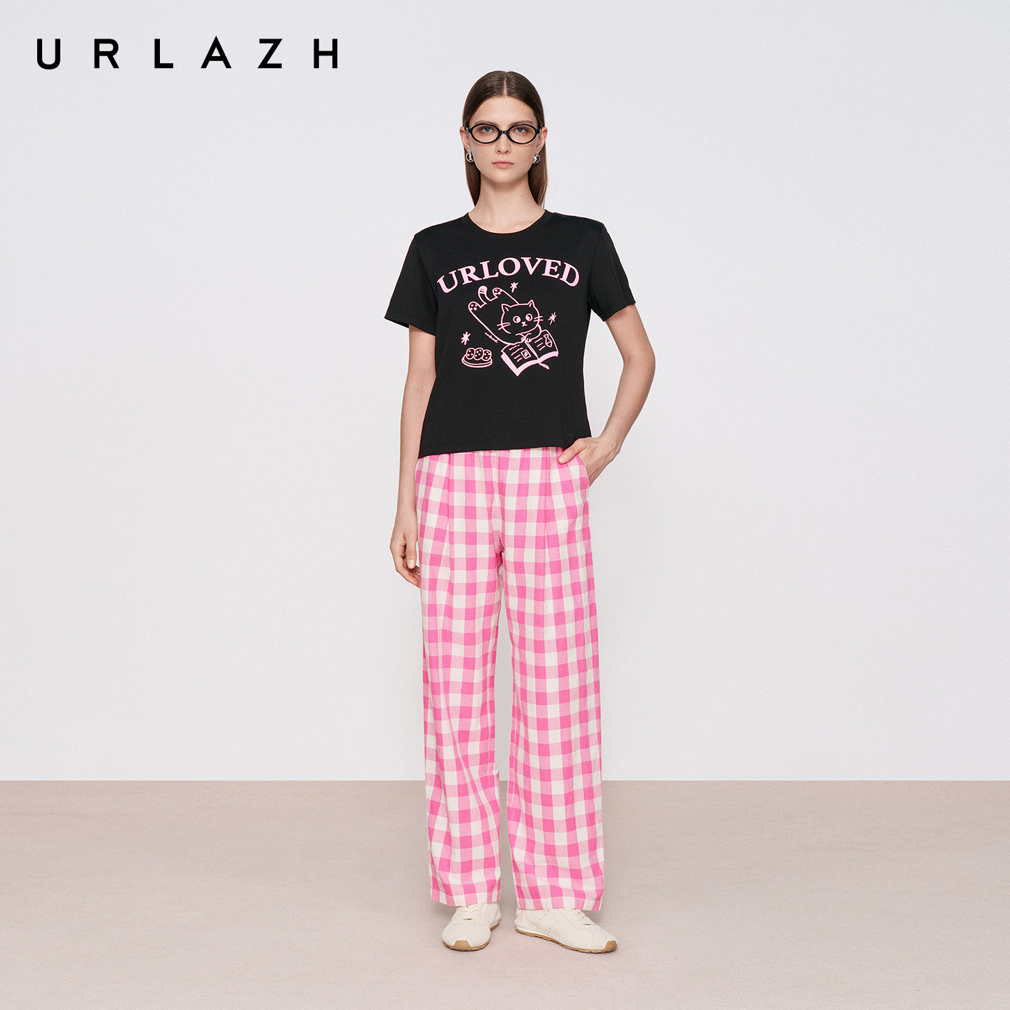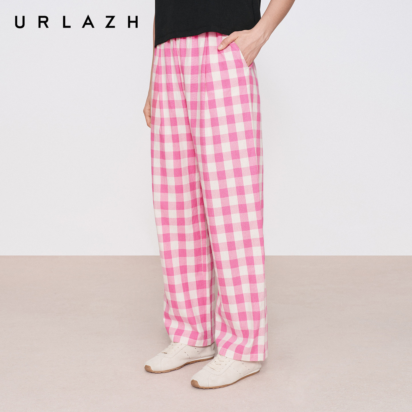 商场同款URLAZH有兰2026夏季新款复古撞色粉白格纹高腰锥形休闲裤